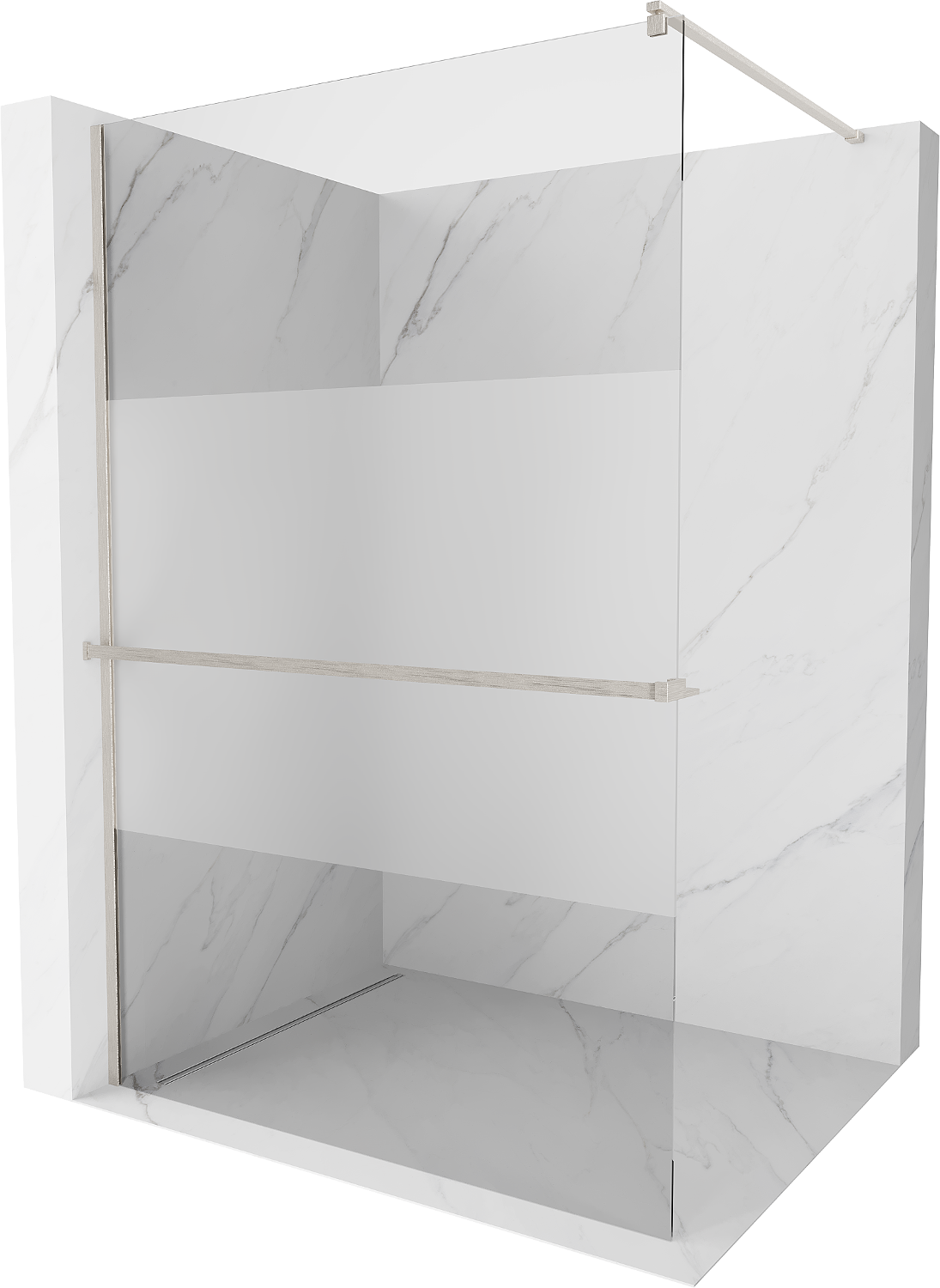 Mexen Kioto+ sprchová stěna s policí Walk-in 130 x 200 cm, transparentní/mat, kartáčovaný nikl - 800-130-121-97-35
