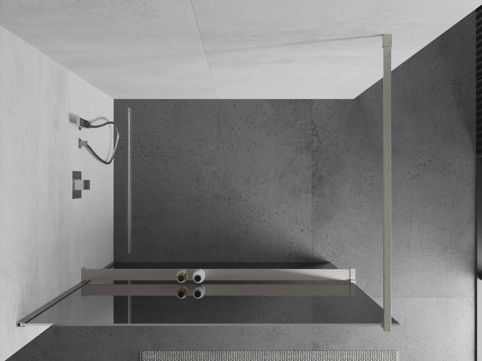 Mexen Kioto+ sprchová stěna s policí Walk-in 140 x 200 cm, zrcadlo, kartáčovaný nikl - 800-140-121-97-50