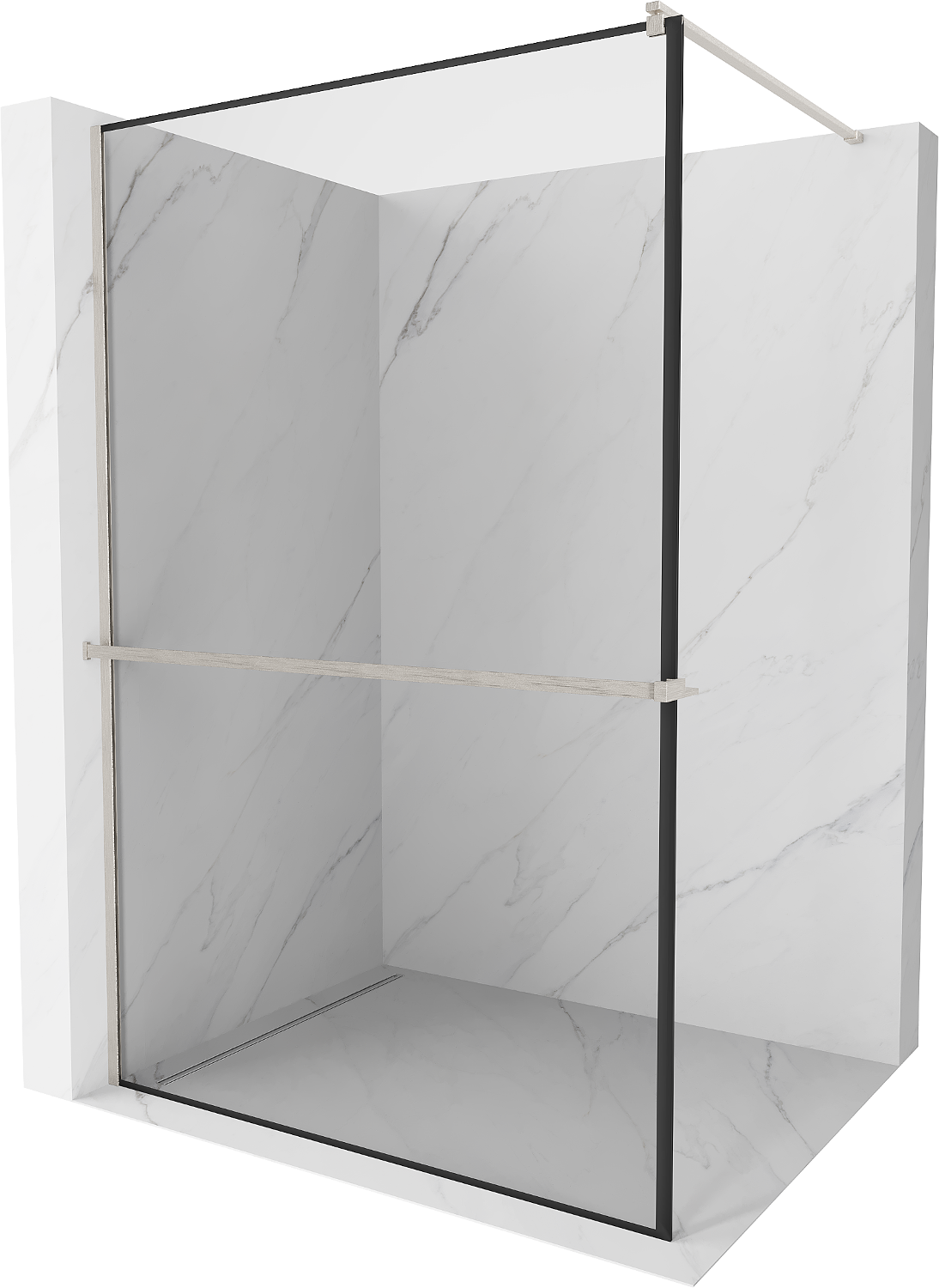 Mexen Kioto+ sprchová zástěna s policí Walk-in 110 x 200 cm, černý rámeček, kartáčovaný nikl - 800-110-121-97-70