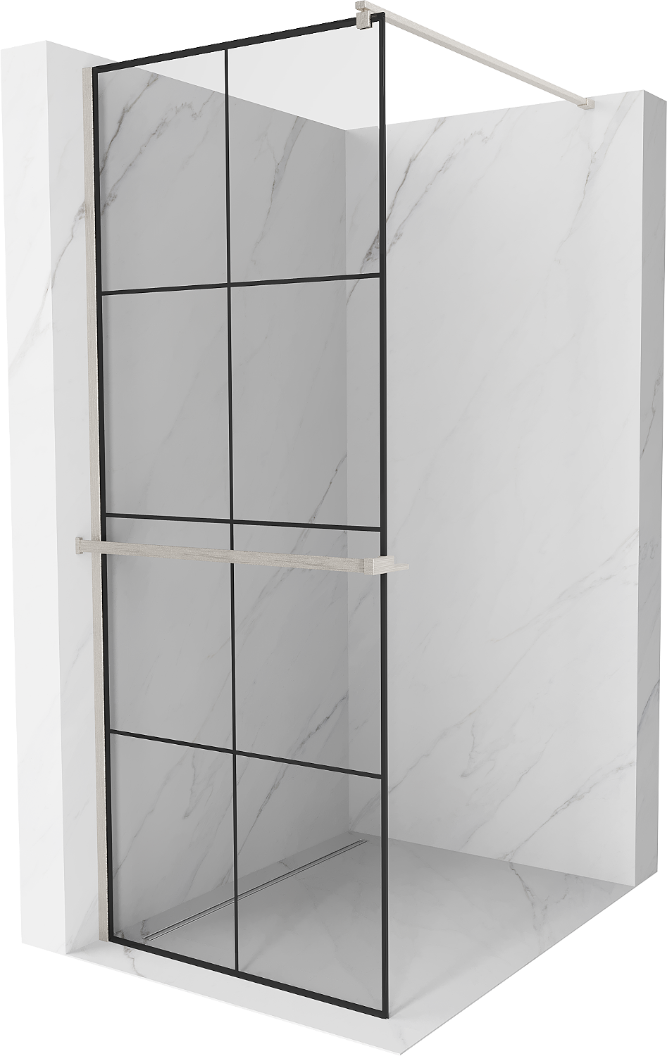 • Mexen Kioto+ sprchová stěna s policí Walk-in 70 x 200 cm, černá mřížka, kartáčovaný nikl - 800-070-121-97-77