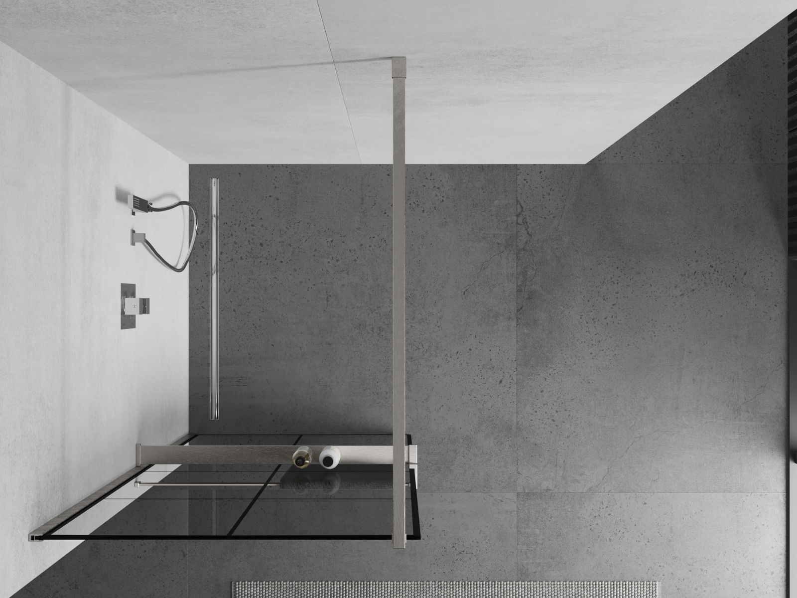 Mexen Kioto+ sprchová stěna s poličkou Walk-in 80 x 200 cm, černá mřížka, kartáčovaný nikl - 800-080-121-97-77