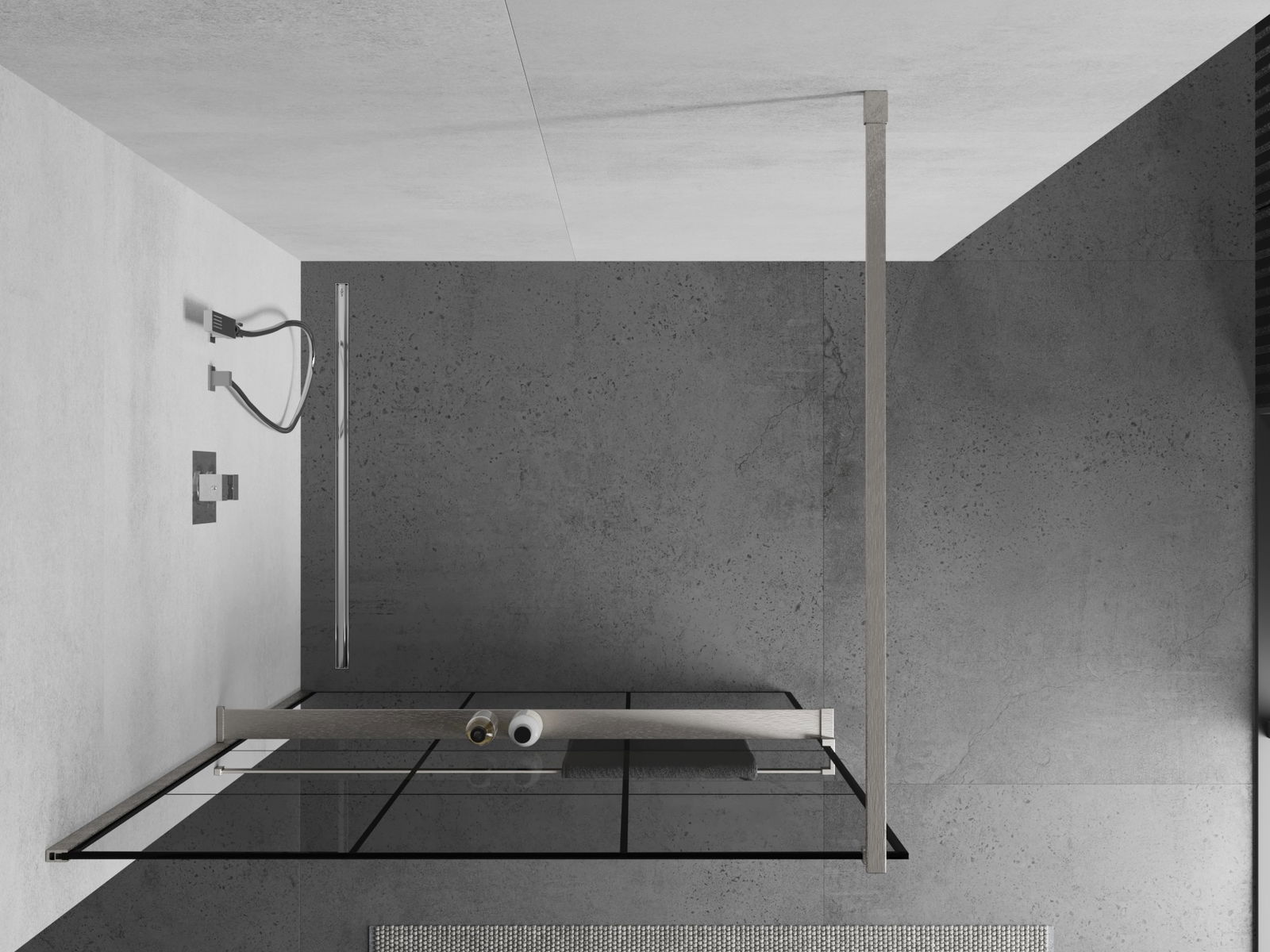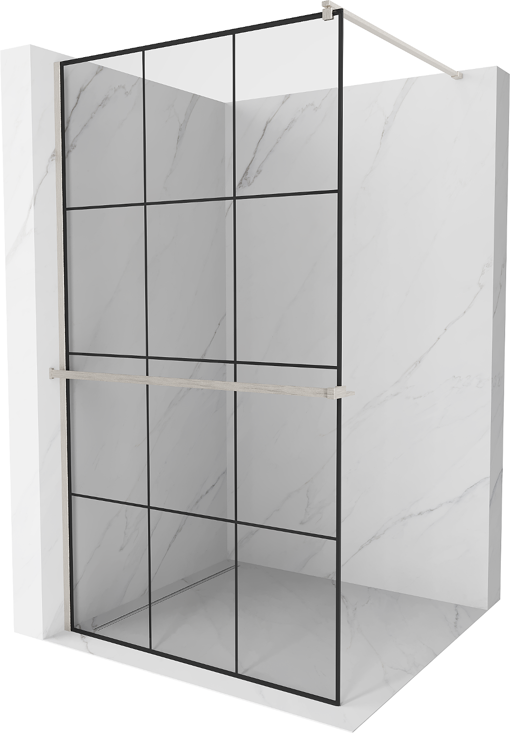Mexen Kioto+ sprchová stěna s policí Walk-in 100 x 200 cm, černá mřížka, kartáčovaný nikl - 800-100-121-97-77