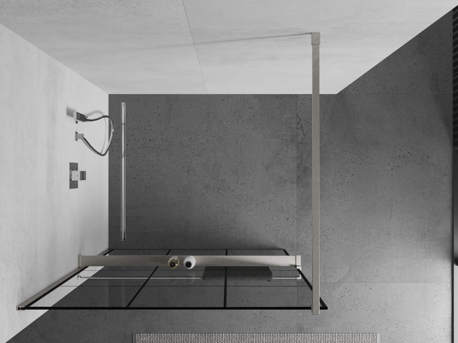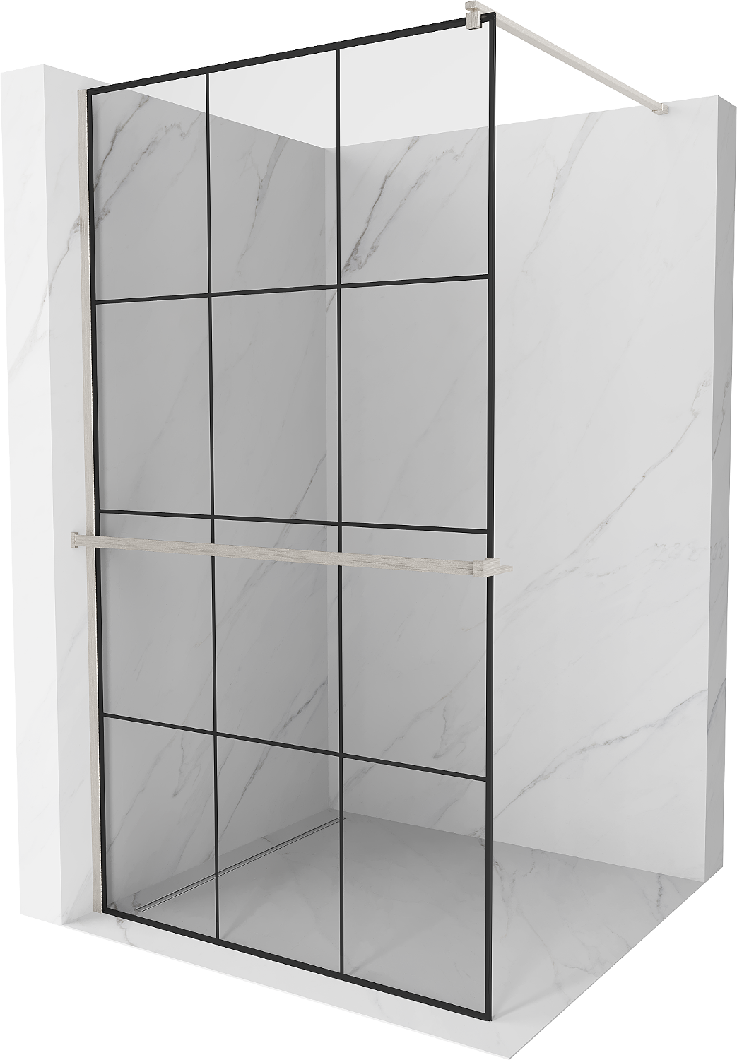 Mexen Kioto+ sprchová stěna s policí Walk-in 110 x 200 cm, černá mřížka, kartáčovaný nikl - 800-110-121-97-77