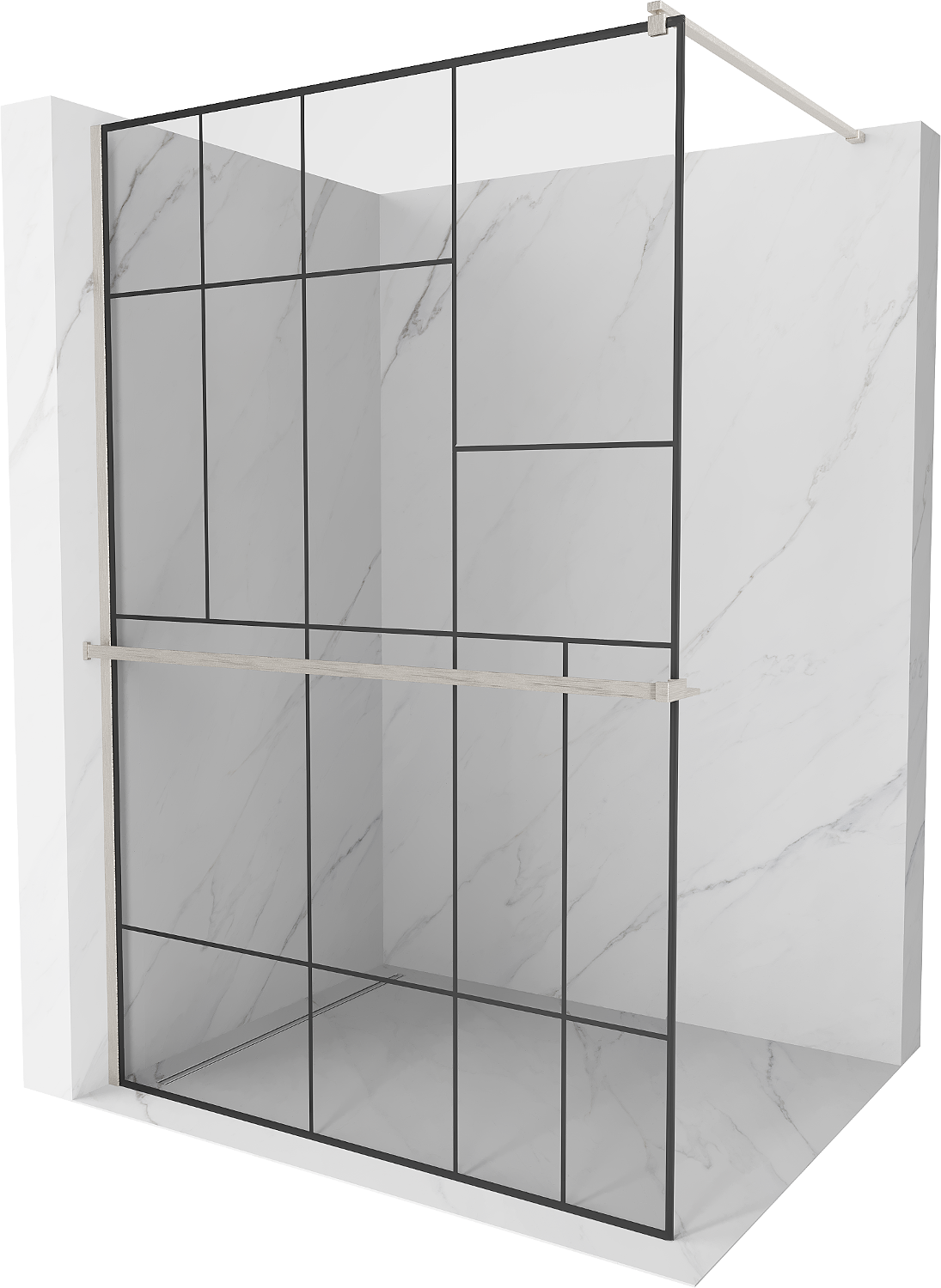 Mexen Kioto+ sprchová stěna s policí Walk-in 90 x 200 cm, černý vzor, kartáčovaný nikl - 800-090-121-97-78