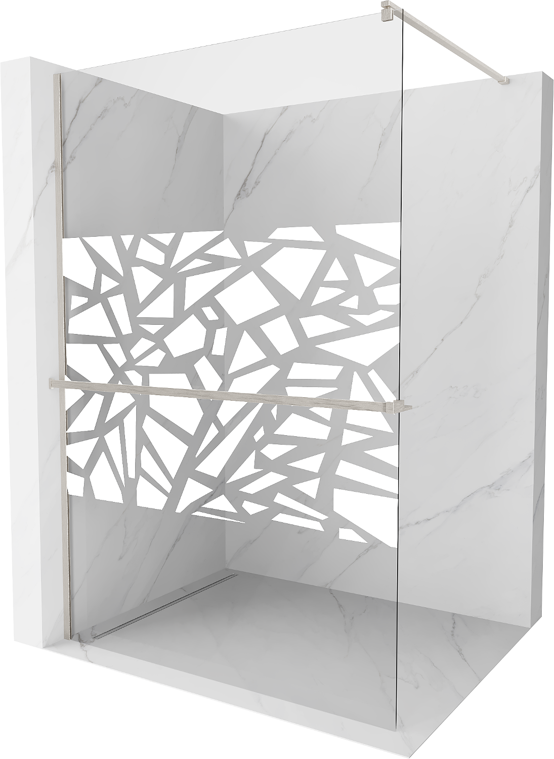 Mexen Kioto+ sprchová stěna s policí Walk-in 90 x 200 cm, bílý vzor, kartáčovaný nikl - 800-090-121-97-85