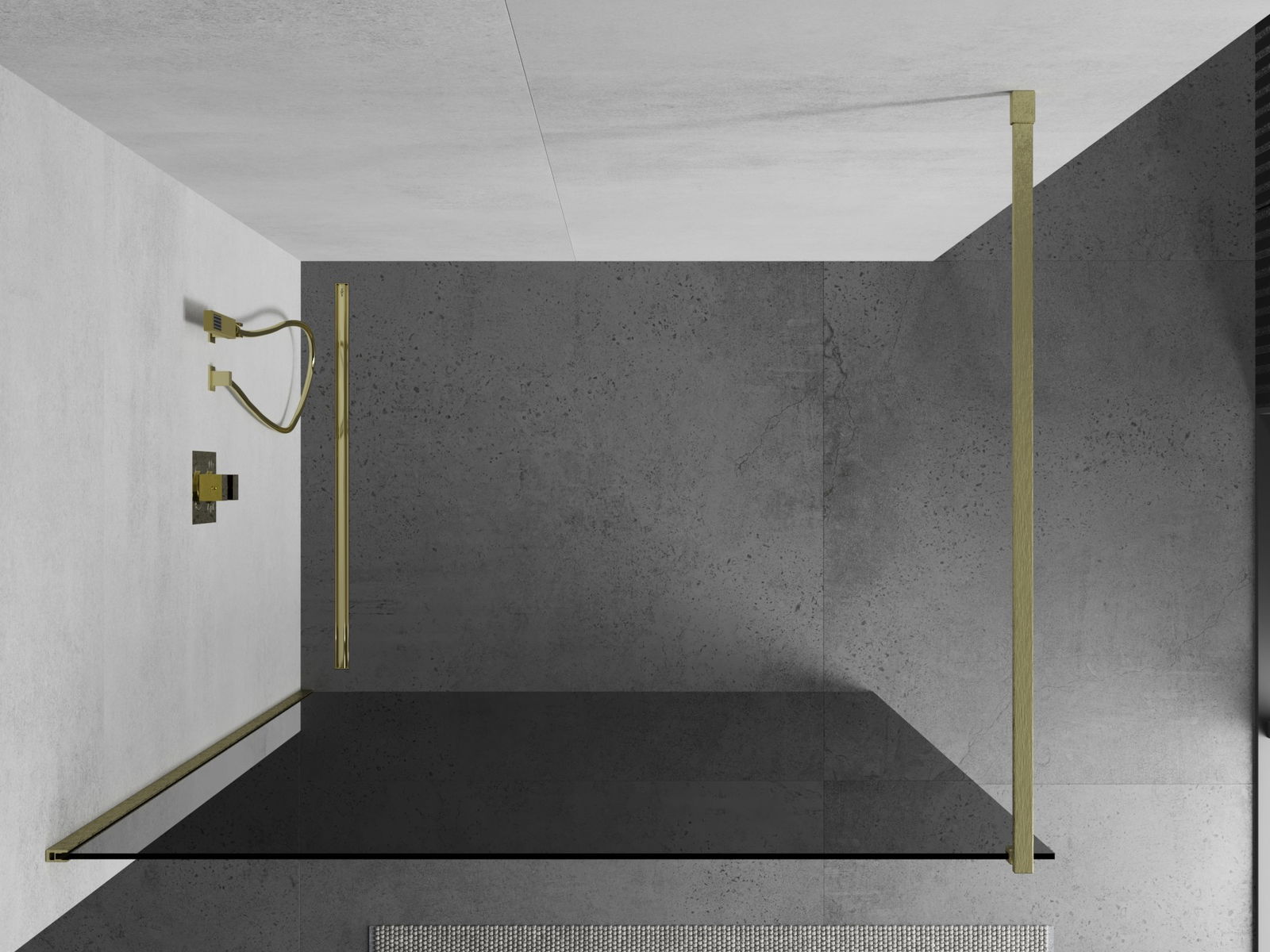 Mexen Kioto sprchová stěna Walk-in 90 x 200 cm, grafit 8 mm, zlatá kartáčovaná - 800-090-101-55-40