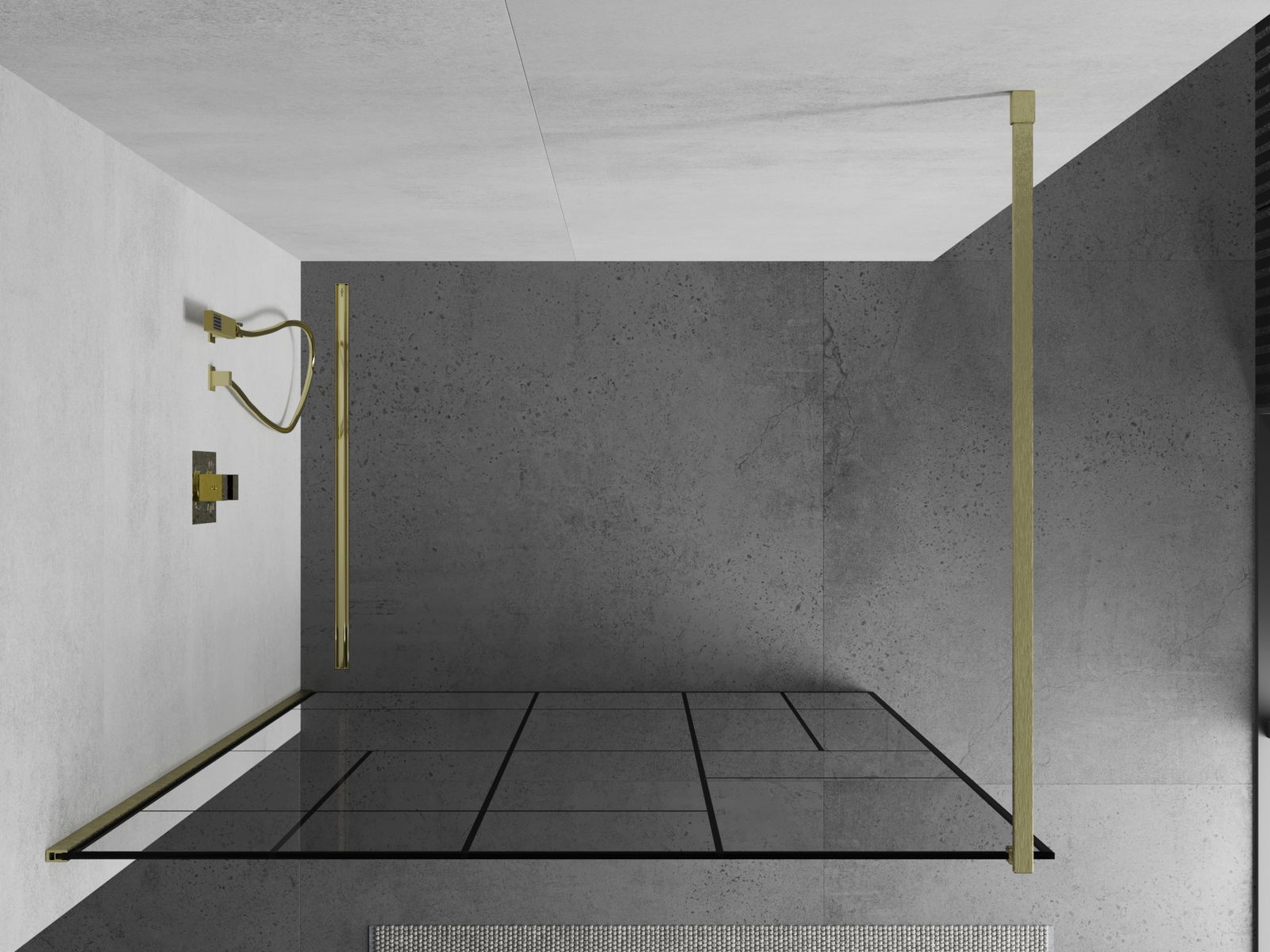 Mexen Kioto sprchová stěna Walk-in 100 x 200 cm, černý vzor 8 mm, zlatá kartáčovaná - 800-100-101-55-78
