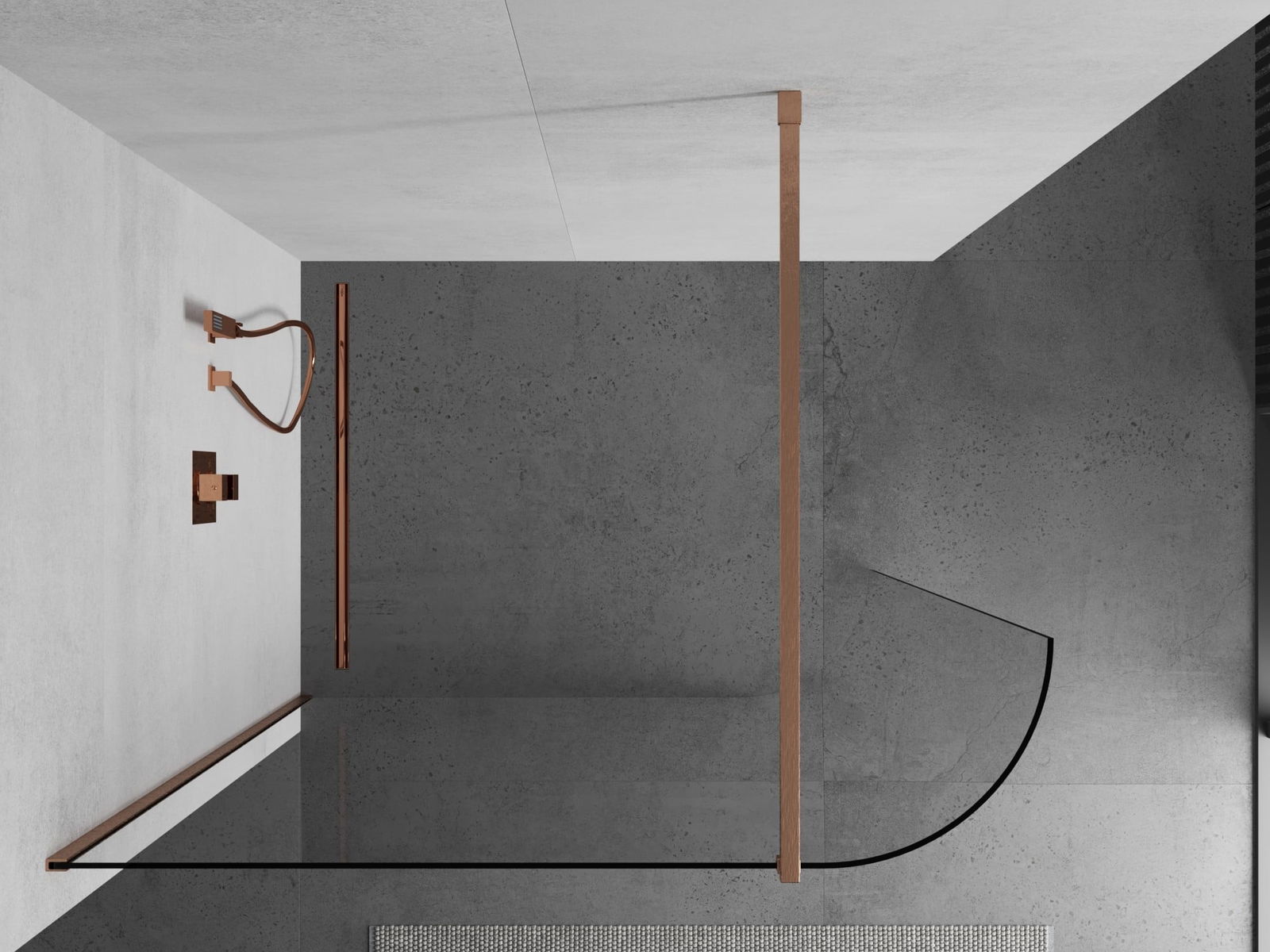 Mexen Kioto-R zakřivená sprchová stěna Walk-in 160 x 200 cm, transparentní 8 mm, kartáčovaná měď - 800-160-101-65-06