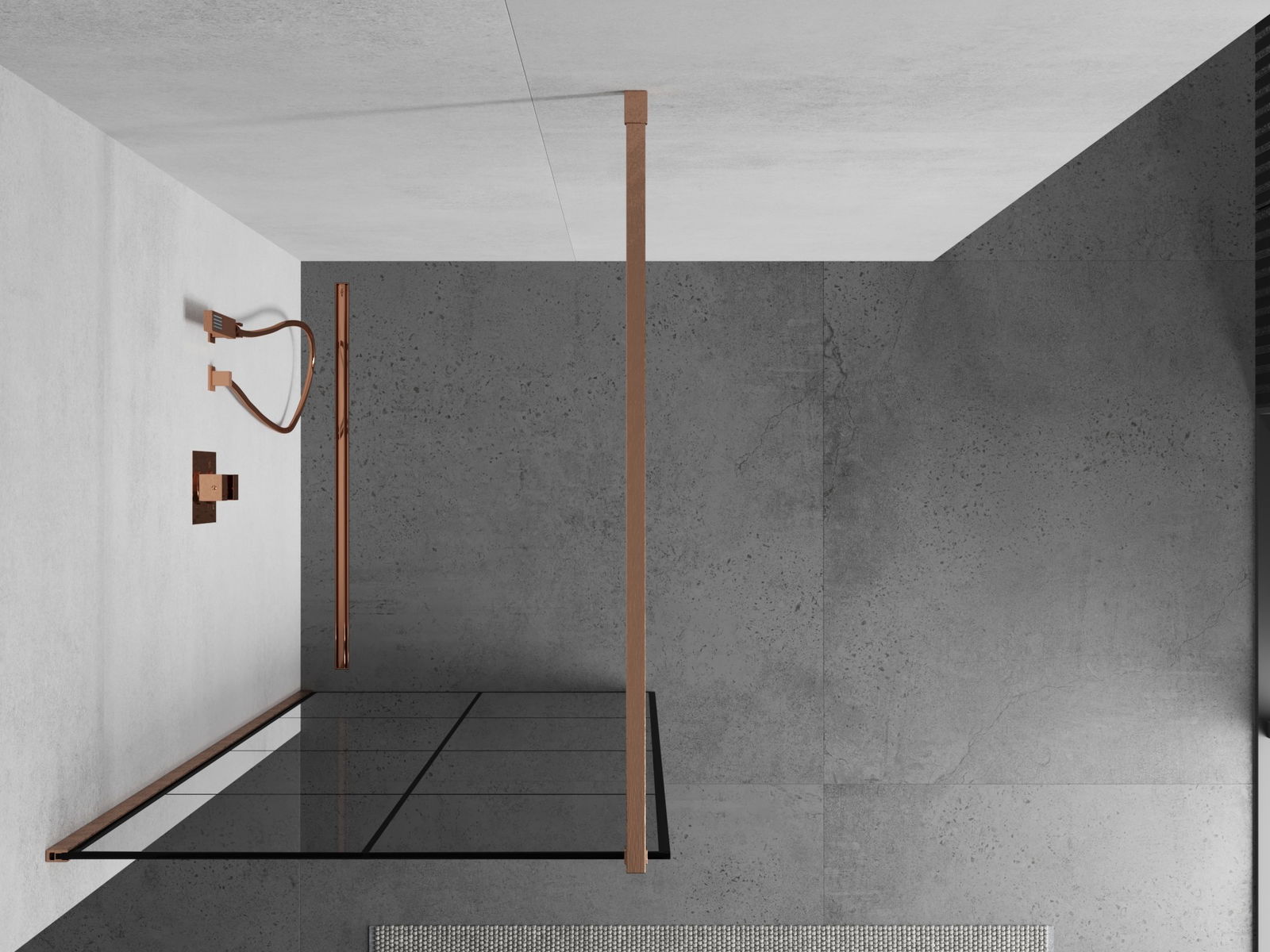 Mexen Kioto sprchová stěna Walk-in 90 x 200 cm, černá mřížka 8 mm, kartáčovaná měď - 800-090-101-65-77
