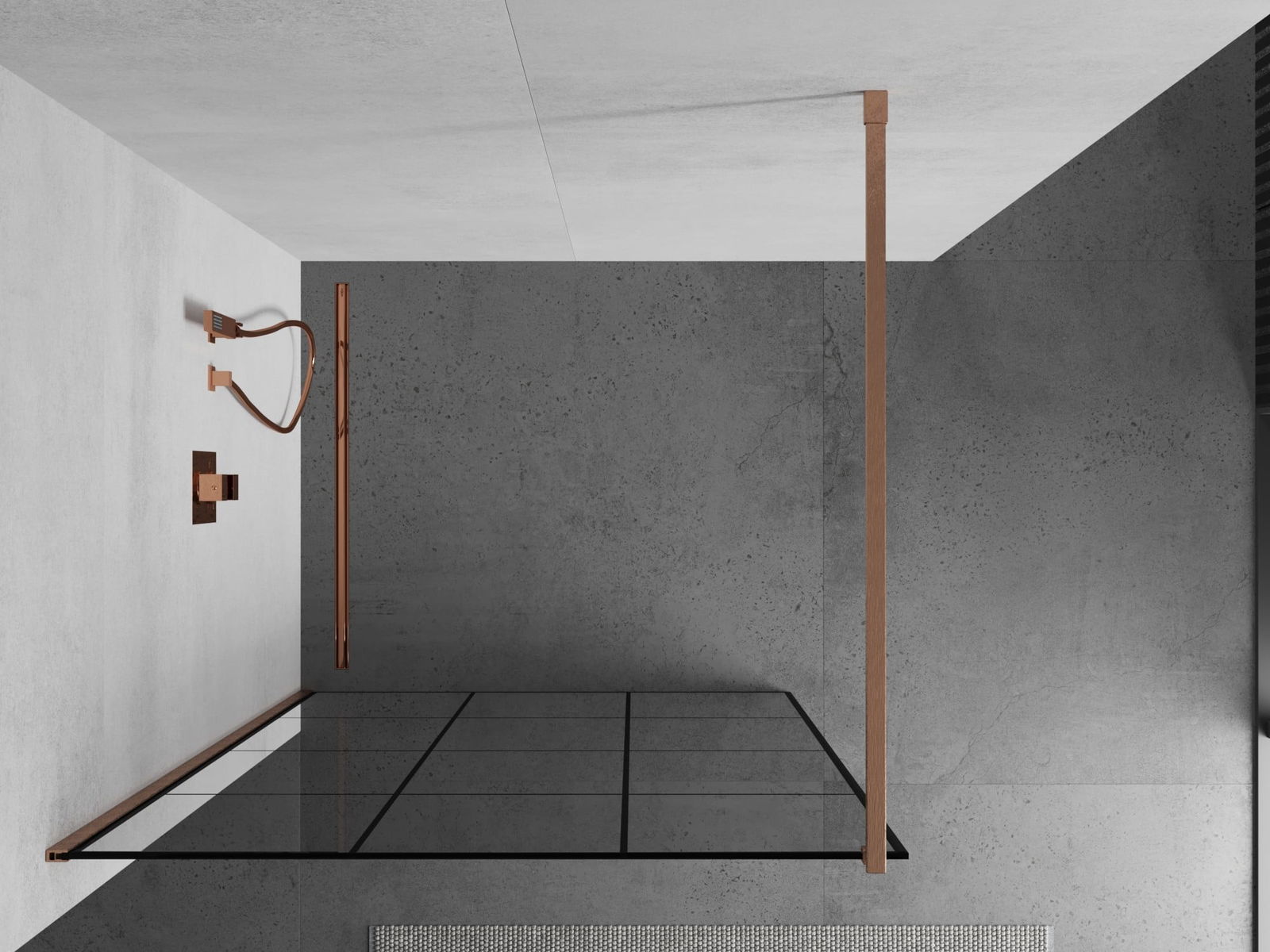 Mexen Kioto sprchová stěna Walk-in 110 x 200 cm, černá mřížka 8 mm, kartáčovaná měď - 800-110-101-65-77