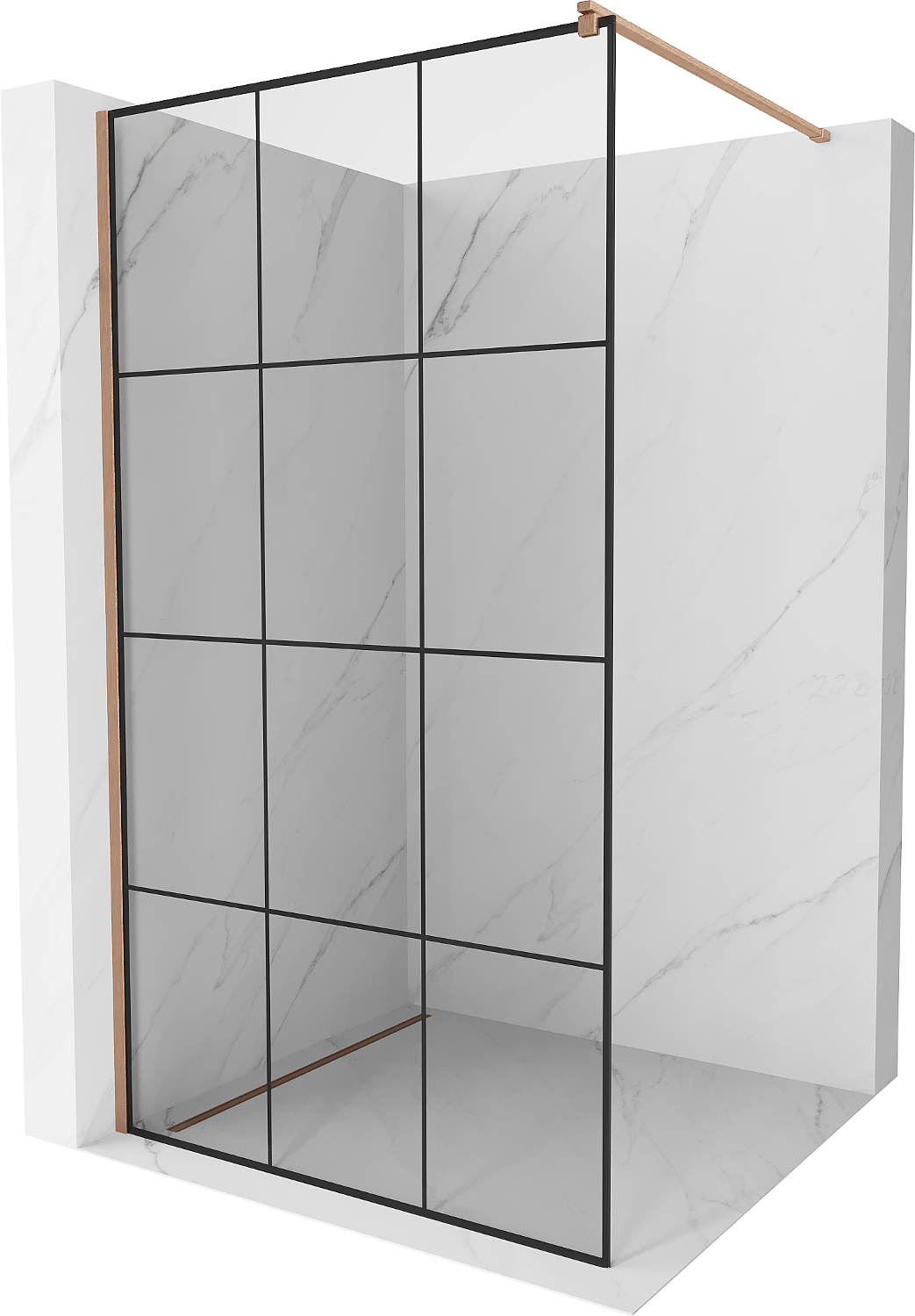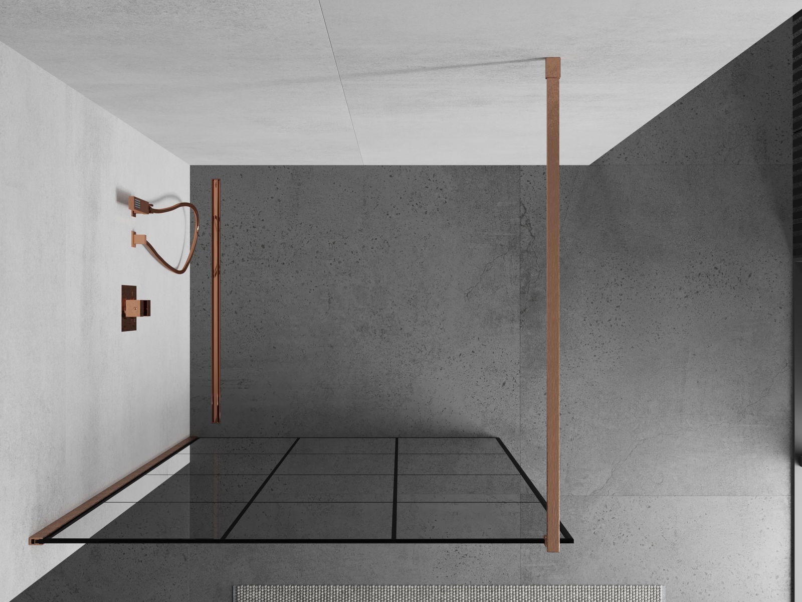 Mexen Kioto sprchová stěna Walk-in 120 x 200 cm, černá mřížka 8 mm, kartáčovaná měď - 800-120-101-65-77