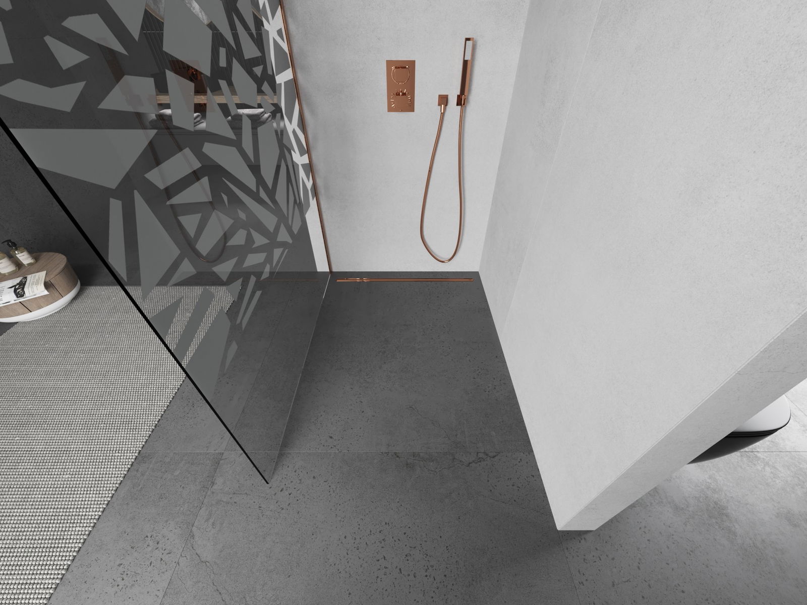 Mexen Kioto sprchová stěna Walk-in 100 x 200 cm, bílý vzor 8 mm, kartáčovaná měď - 800-100-101-65-85