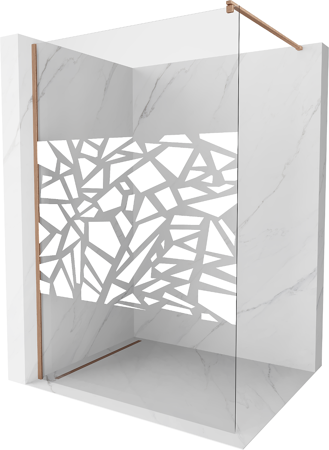 Mexen Kioto sprchová stěna Walk-in 130 x 200 cm, bílý vzor 8 mm, kartáčovaná měď - 800-130-101-65-85