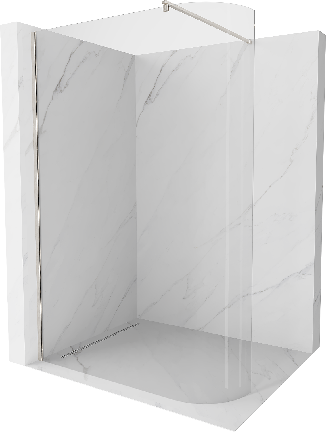 Mexen Kioto-R zaoblená sprchová stěna Walk-in 120 x 200 cm, transparentní 8 mm, kartáčovaný nikl - 800-120-101-97-06