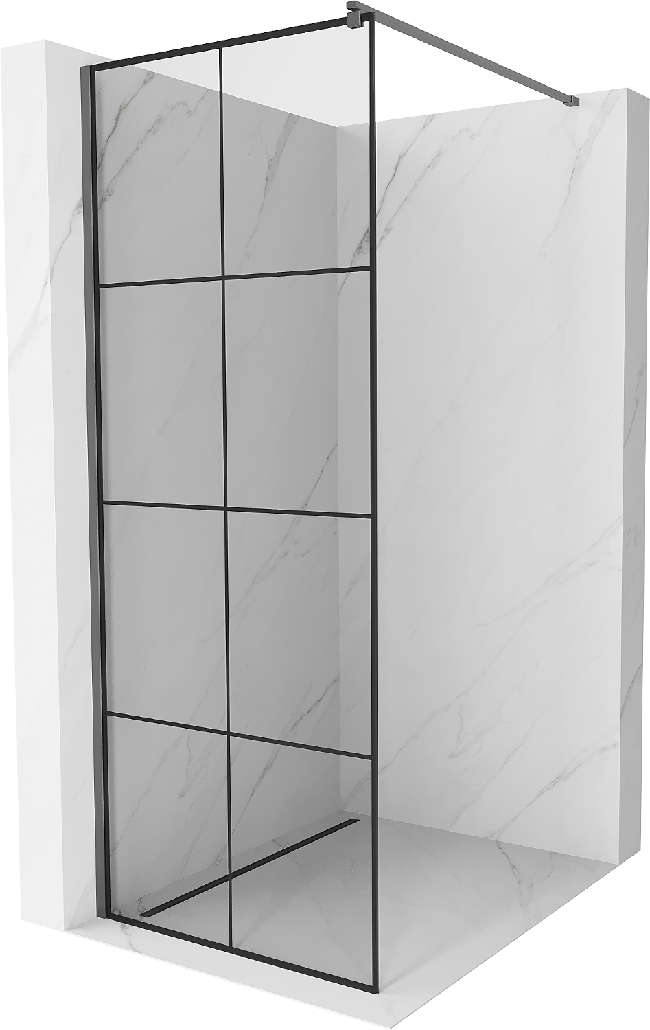 Mexen Kioto sprchová stěna Walk-in 80 x 200 cm, černá mřížka 8 mm, gun metal - 800-080-101-95-77
