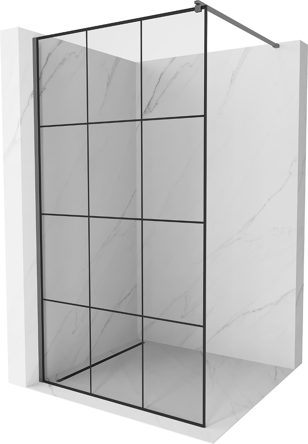 Mexen Kioto sprchová stěna Walk-in 110 x 200 cm, černá mřížka 8 mm, gun metal - 800-110-101-95-77