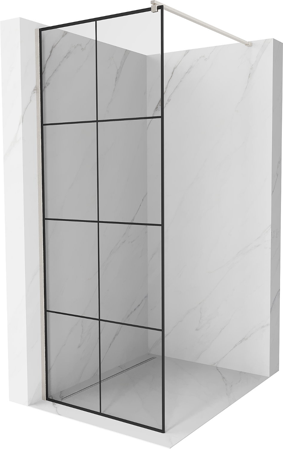 Mexen Kioto stěna sprchy Walk-in 70 x 200 cm, černá mřížka 8 mm, kartáčovaný nikl - 800-070-101-97-77