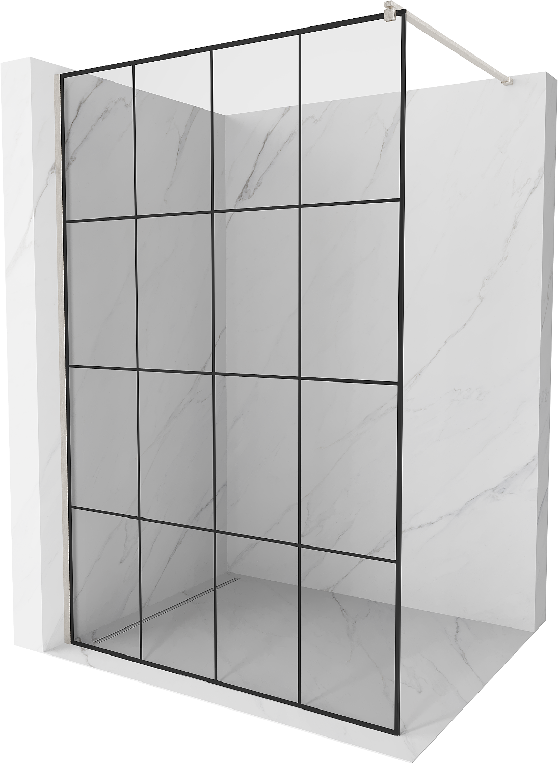 Mexen Kioto sprchová stěna Walk-in 160 x 200 cm, černá mřížka 8 mm, kartáčovaný nikl - 800-160-101-97-77