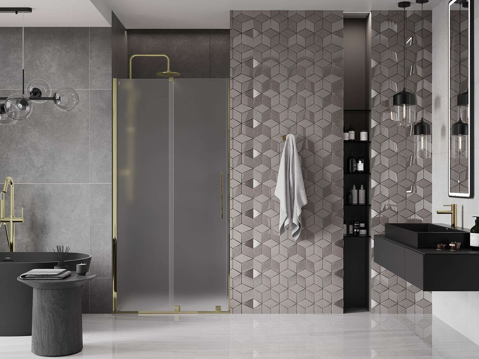 Mexen Velar posuvné sprchové dveře 90 cm, mat, zlaté - 871-090-000-31-50