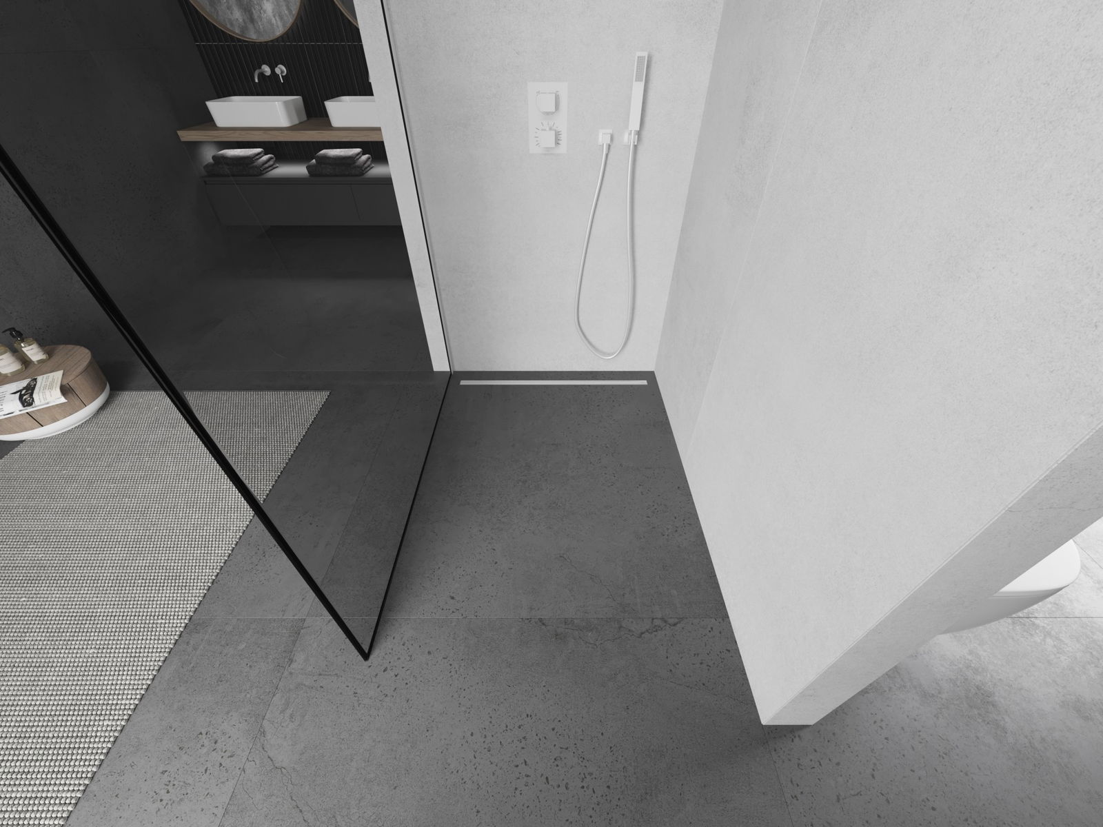 Produkt lze podle potřeby namontovat jak na sprchovou vaničku, tak přímo na podlahu. Univerzální způsob montáže umožňuje přizpůsobení produktu různým typům koupelen a konfiguracím prostor.