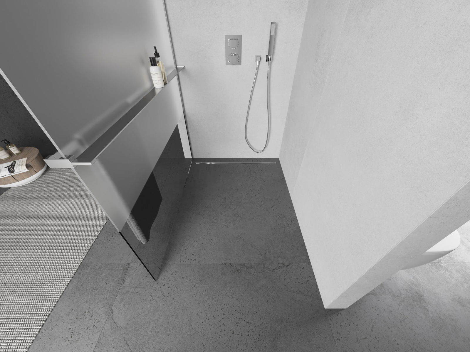Mexen Kioto+ L sprchová stěna s policí Walk-in 110 x 200 cm, průhledná/matná, chrom - 800-110-123-01-35