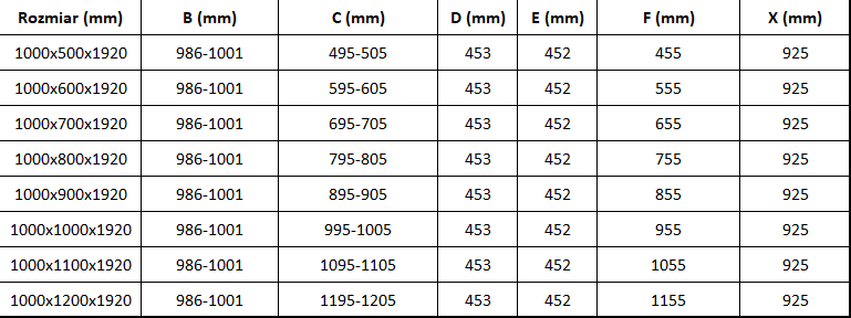Rozměr: 100x80 cm (dveře 100 cm, stěna 80 cm)