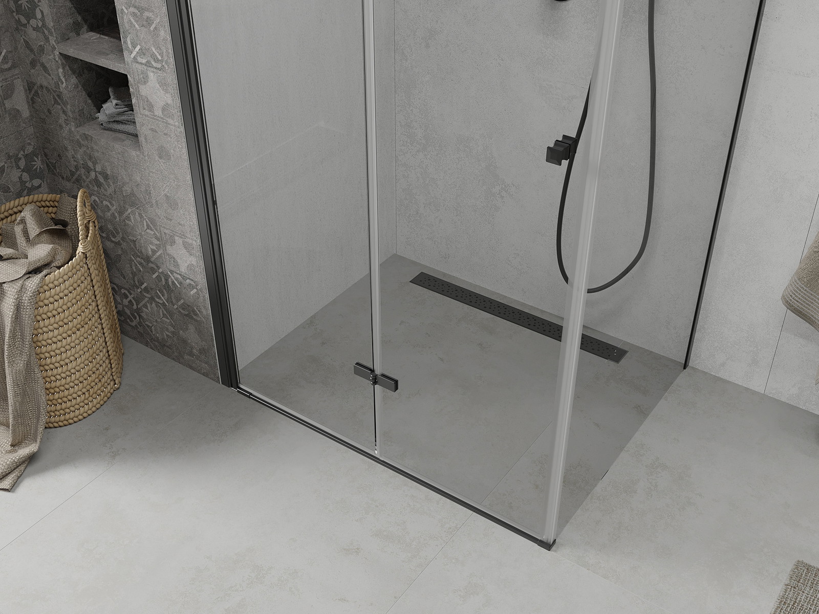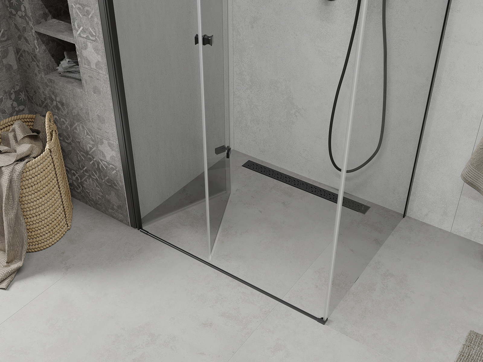 Možnost skládání dveří, jak dovnitř, tak ven, umožňuje získat více prostoru při nepoužívání sprchy. Je to ideální řešení pro menší koupelny, maximálně využívající dostupný prostor.