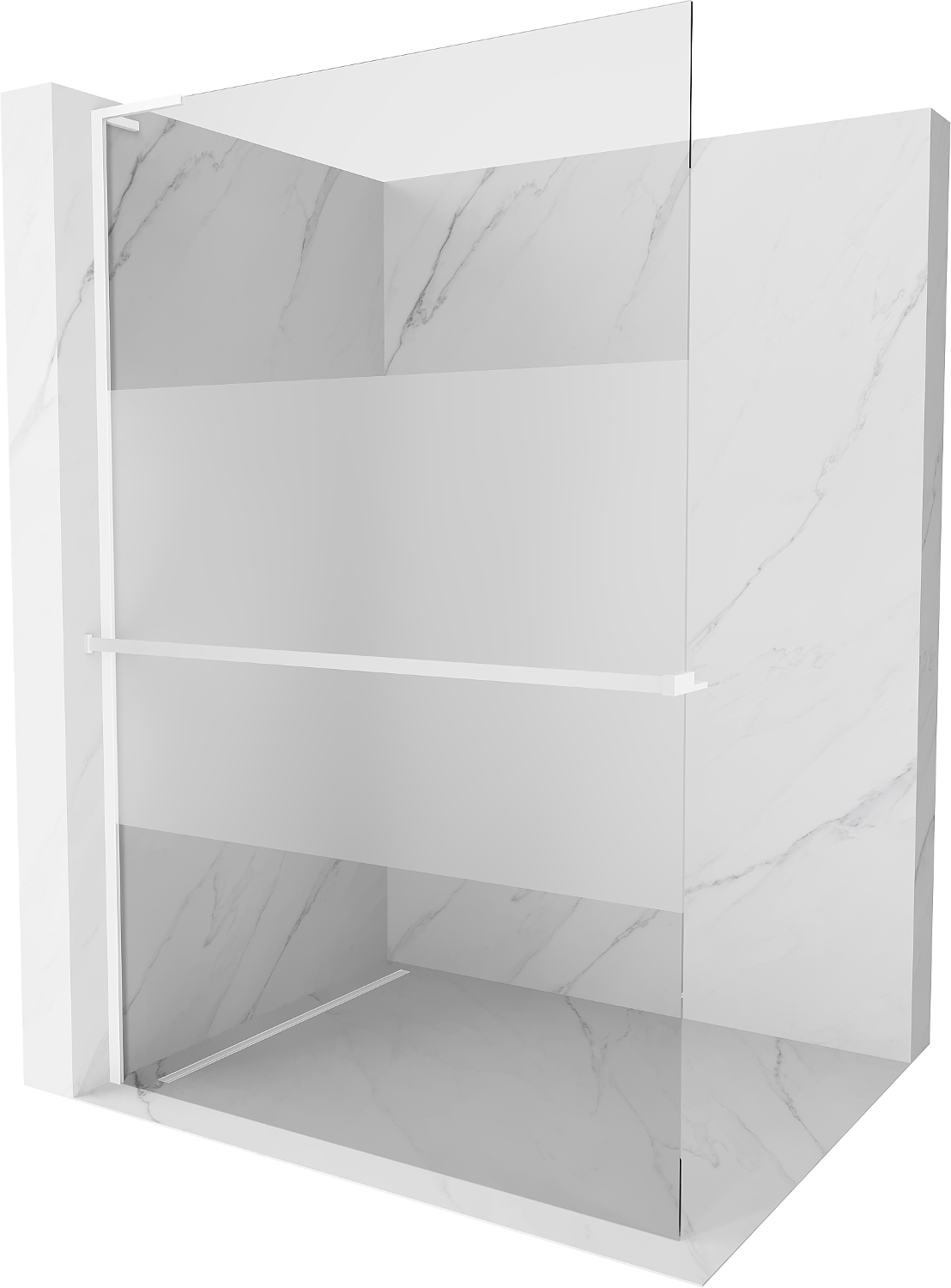 Mexen Kioto+ L sprchová stěna s poličkou Walk-in 90 x 200 cm, transparentní/matný, bílá - 800-090-123-20-35