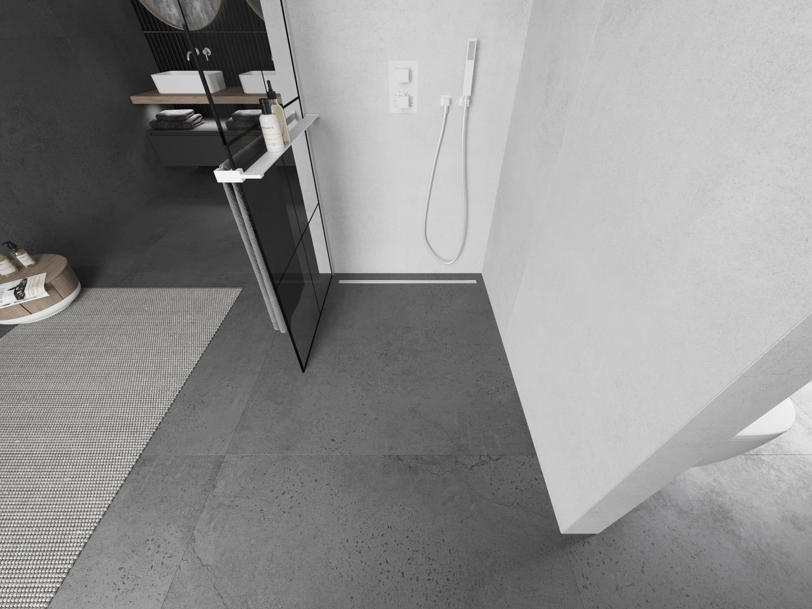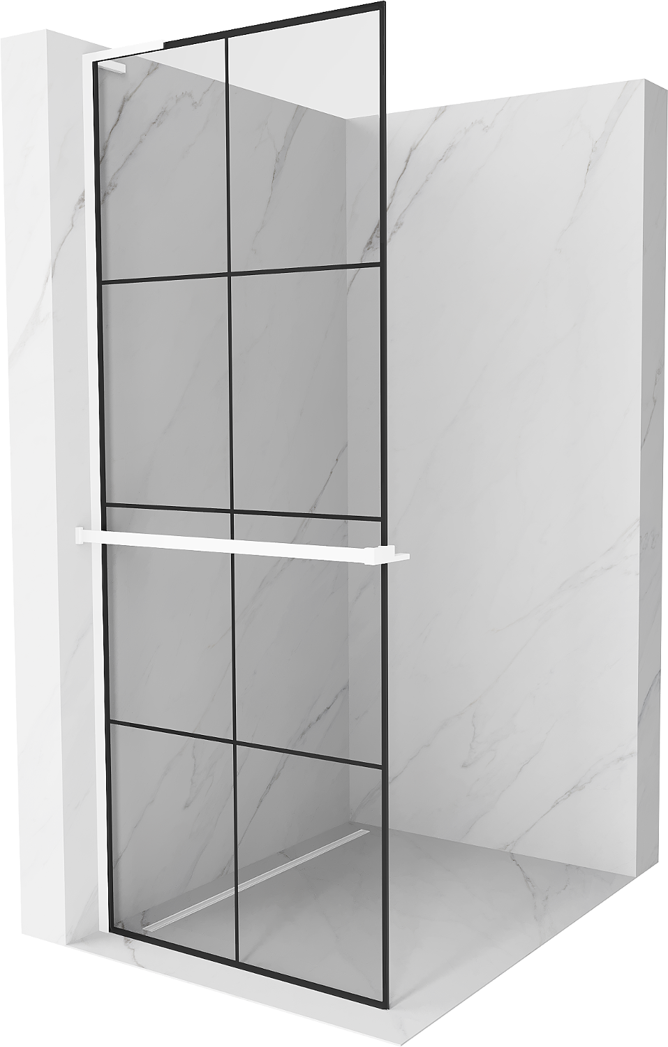 Mexen Kioto+ L sprchová zástěna s poličkou Walk-in 90 x 200 cm, černá mřížka, bílá - 800-090-123-20-77