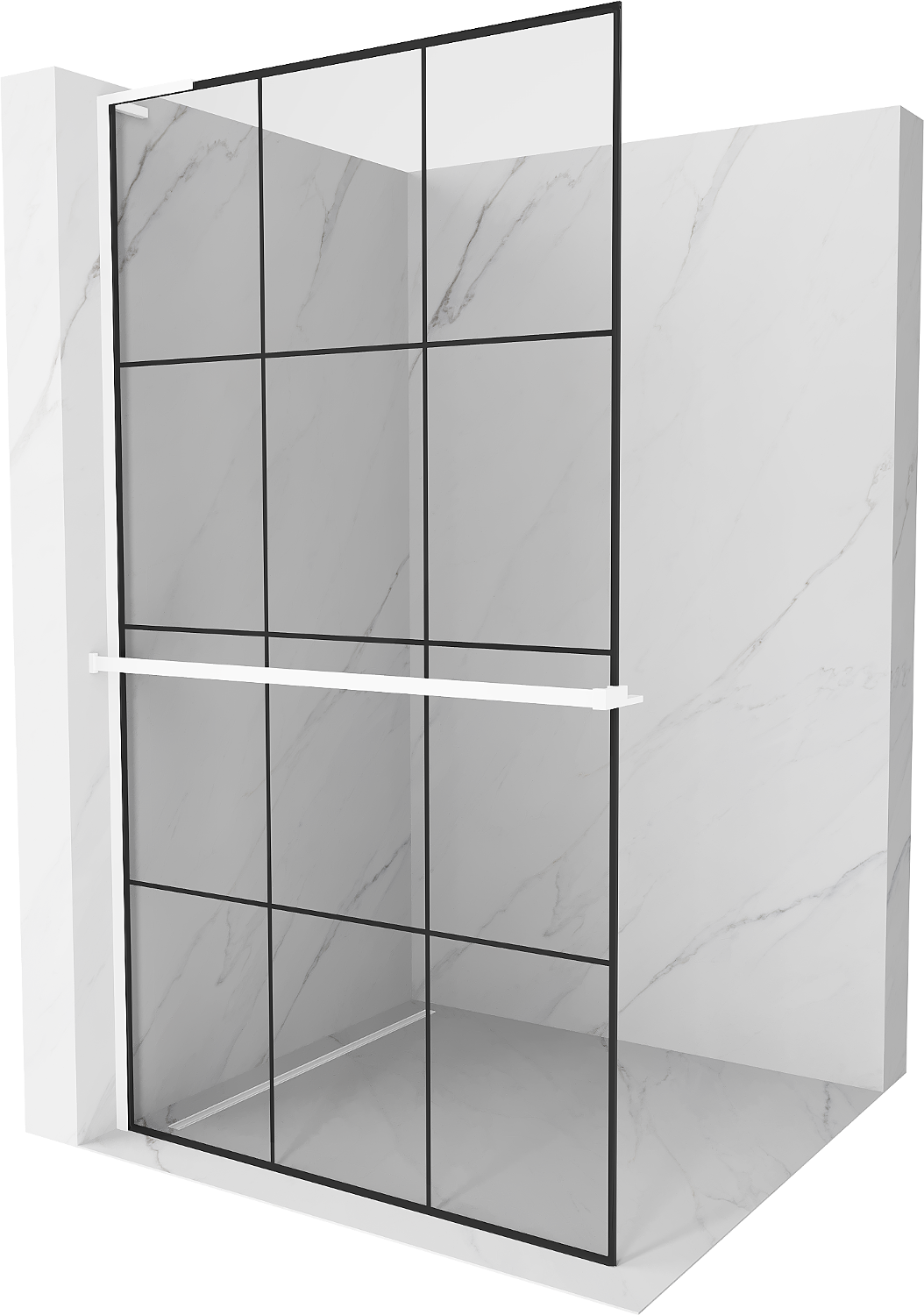 Mexen Kioto+ L sprchová stěna s poličkou Walk-in 110 x 200 cm, černá mřížka, bílá - 800-110-123-20-77