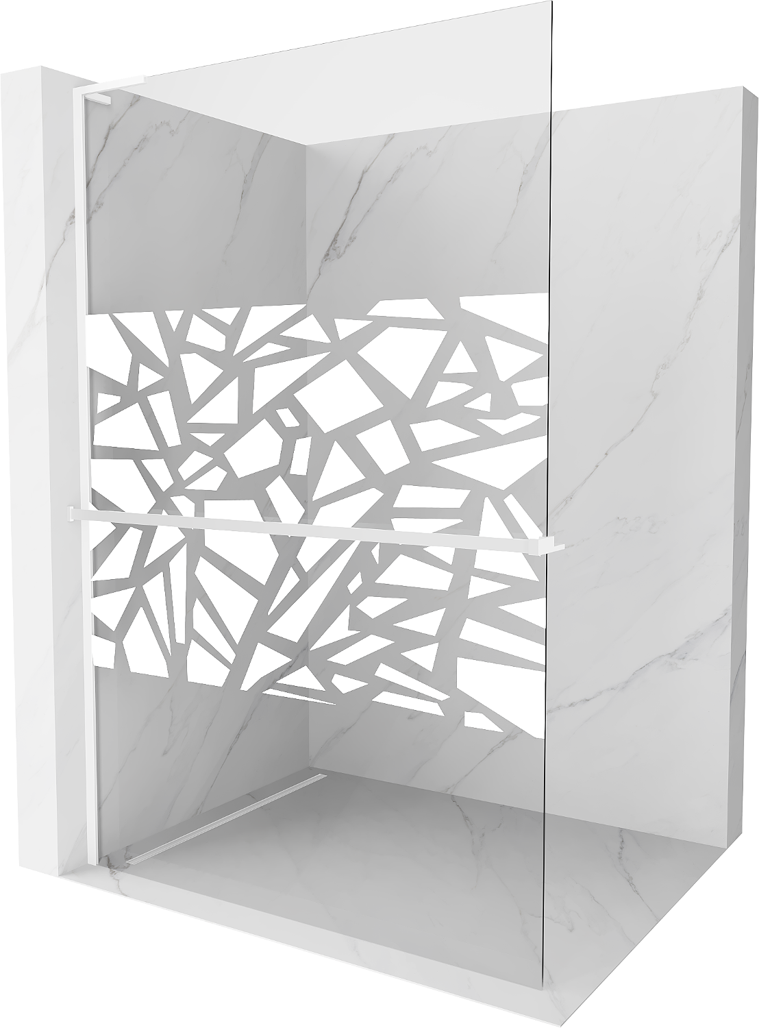 Mexen Kioto+ L sprchová zástěna s policí Walk-in 100 x 200 cm, bílý vzor, bílá - 800-100-123-20-85
