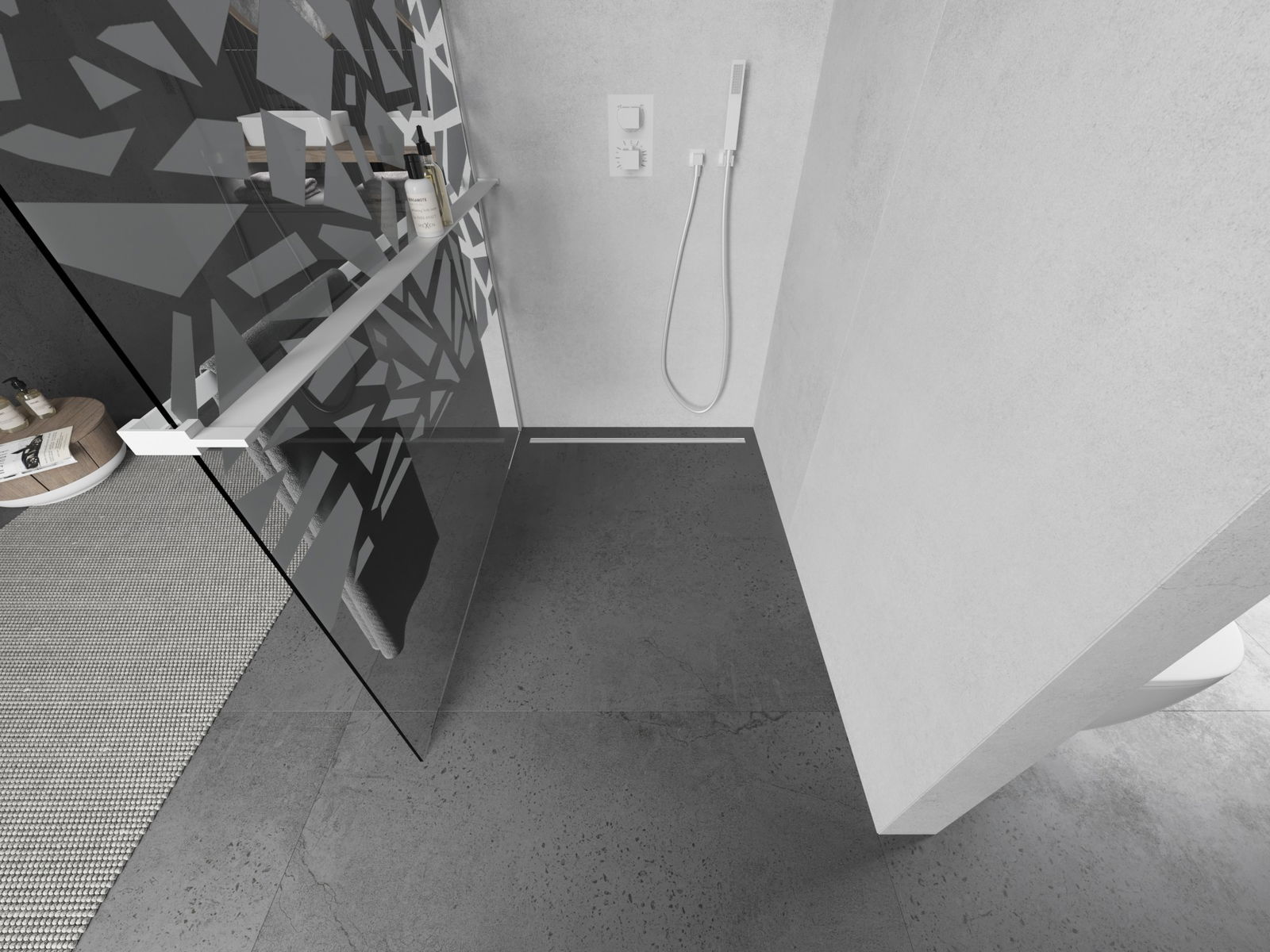Produkt lze podle potřeby namontovat jak na sprchovou vaničku, tak přímo na podlahu. Univerzální způsob montáže umožňuje přizpůsobení produktu různým typům koupelen a konfiguracím prostor.