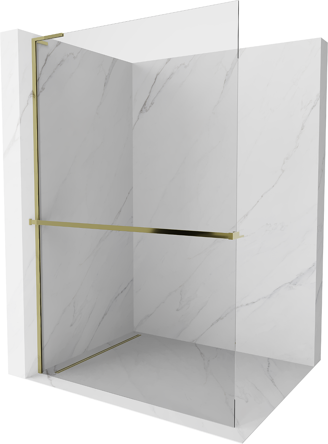 Mexen Kioto+ L sprchová stěna s policí Walk-in 110 x 200 cm, transparentní, zlatá - 800-110-123-50-00