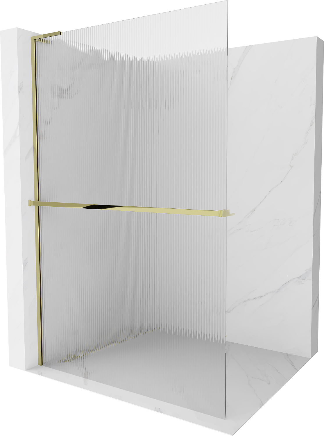 Mexen Kioto+ L sprchová stěna s poličkou Walk-in 90 x 200 cm, proužky, zlatá - 800-090-123-50-09