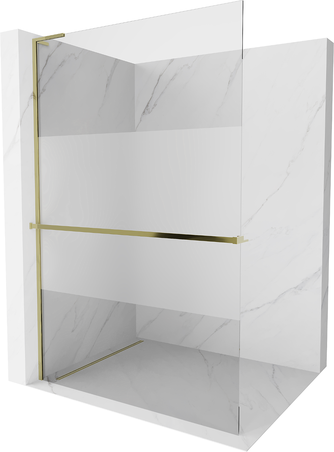 Mexen Kioto+ L sprchová stěna s policí Walk-in 120 x 200 cm, transparentní/matná, zlatá - 800-120-123-50-35