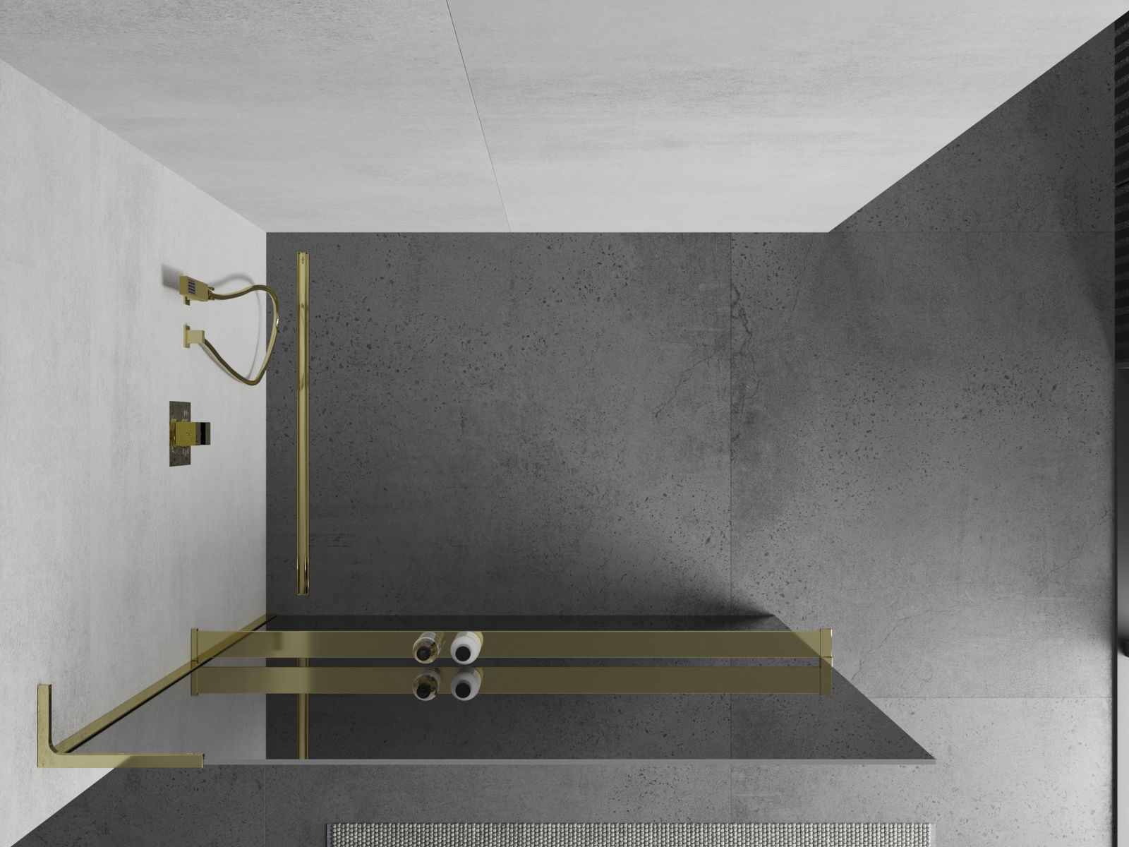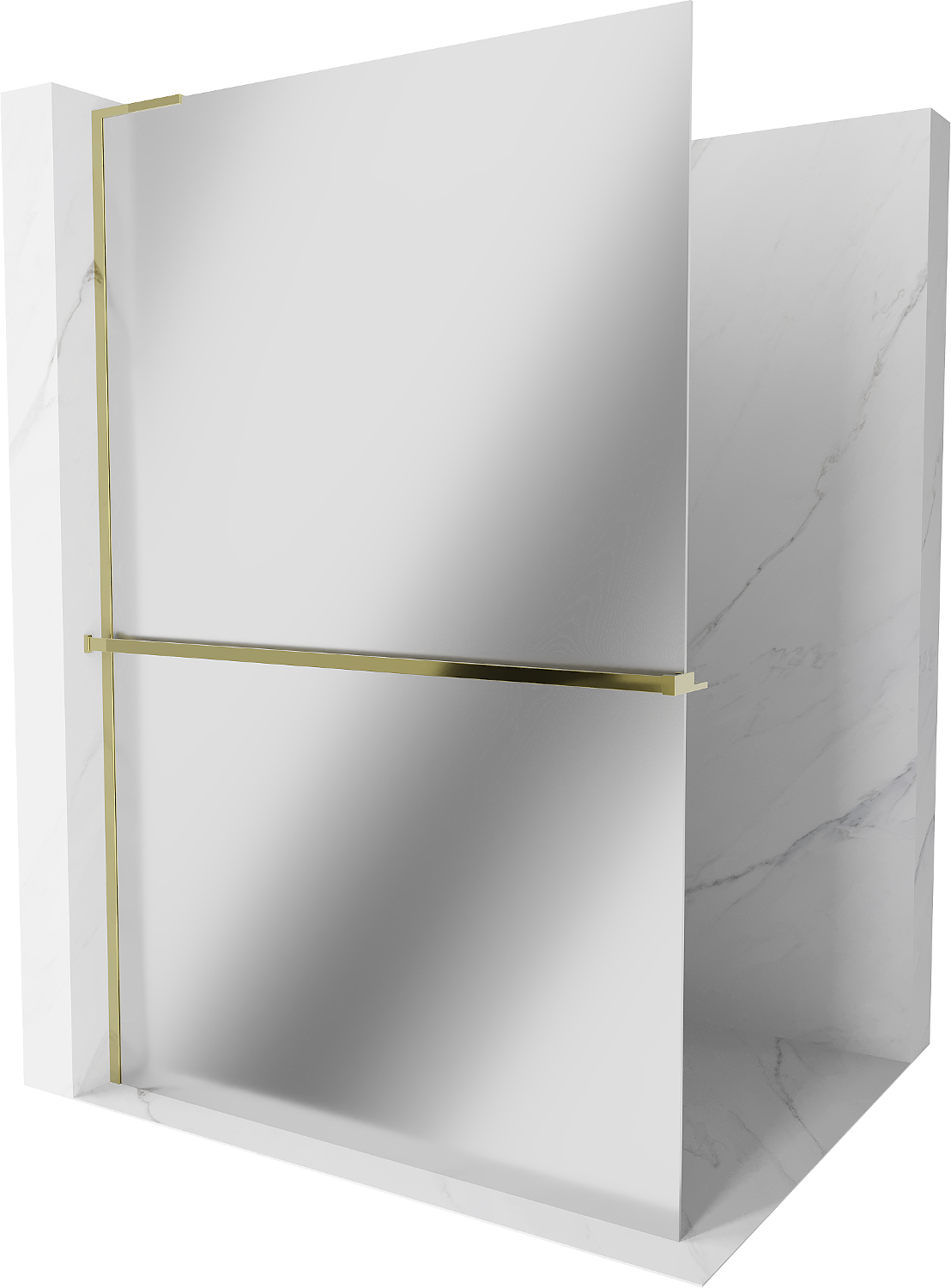 Mexen Kioto+ L sprchová stěna s poličkou Walk-in 120 x 200 cm, zrcadlo, zlatá - 800-120-123-50-50