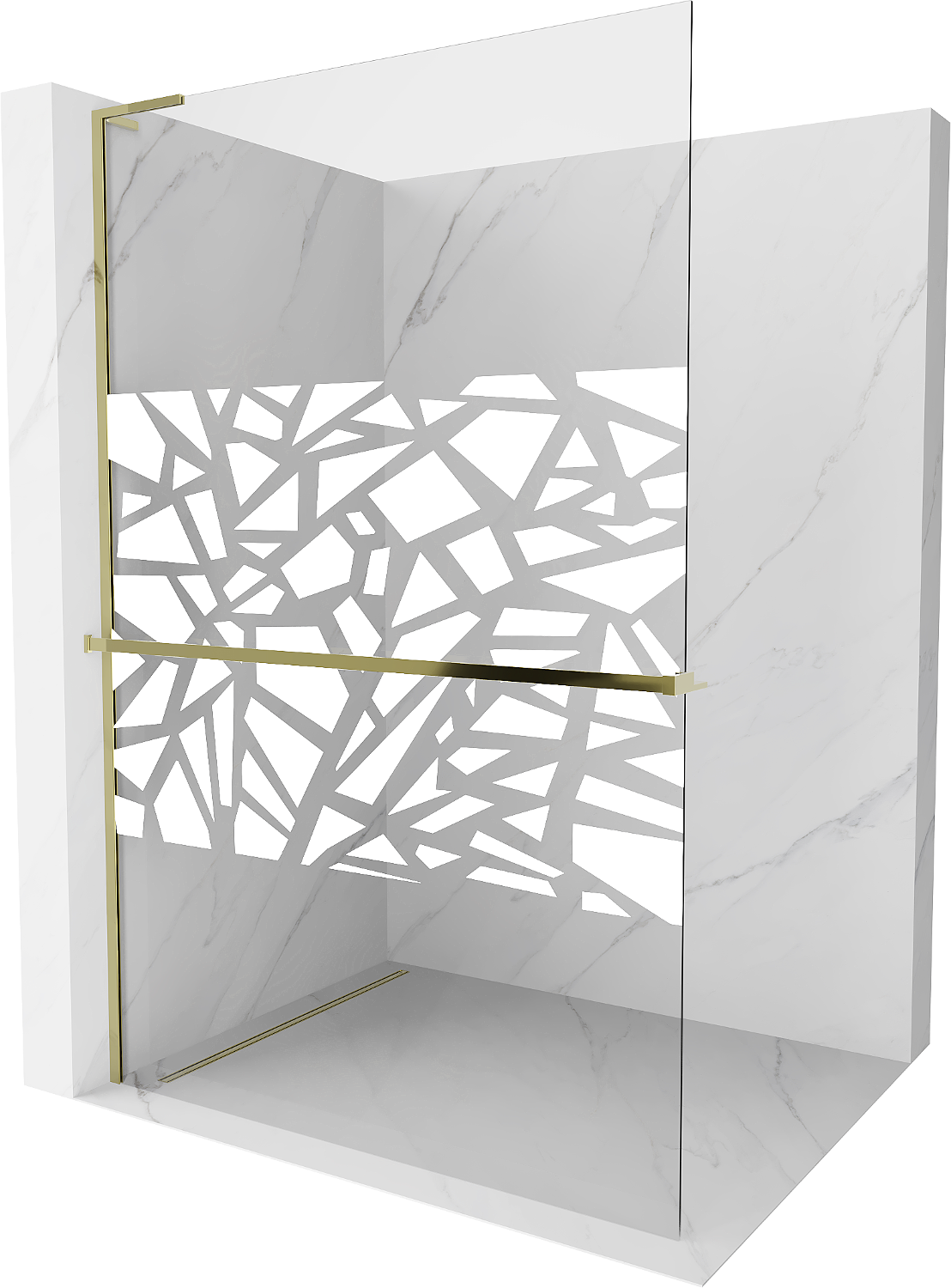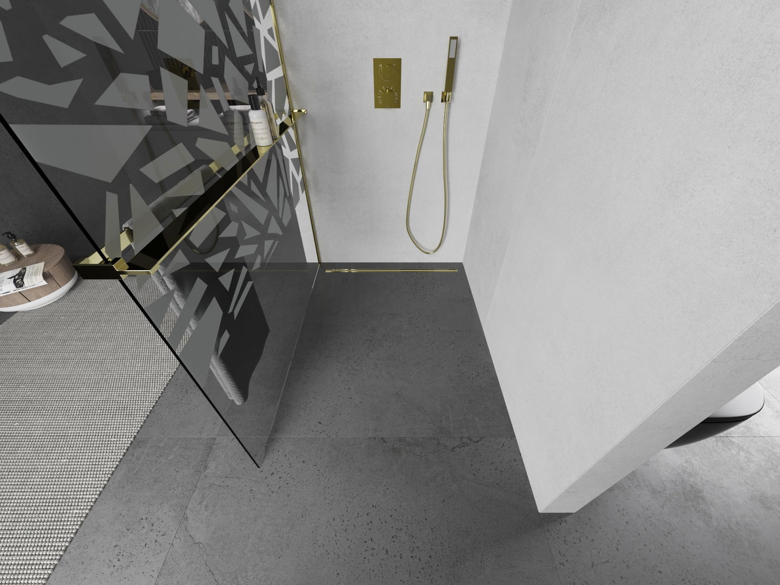 Mexen Kioto+ L sprchová stěna s poličkou Walk-in 70 x 200 cm, bílý vzor, zlatá - 800-070-123-50-85