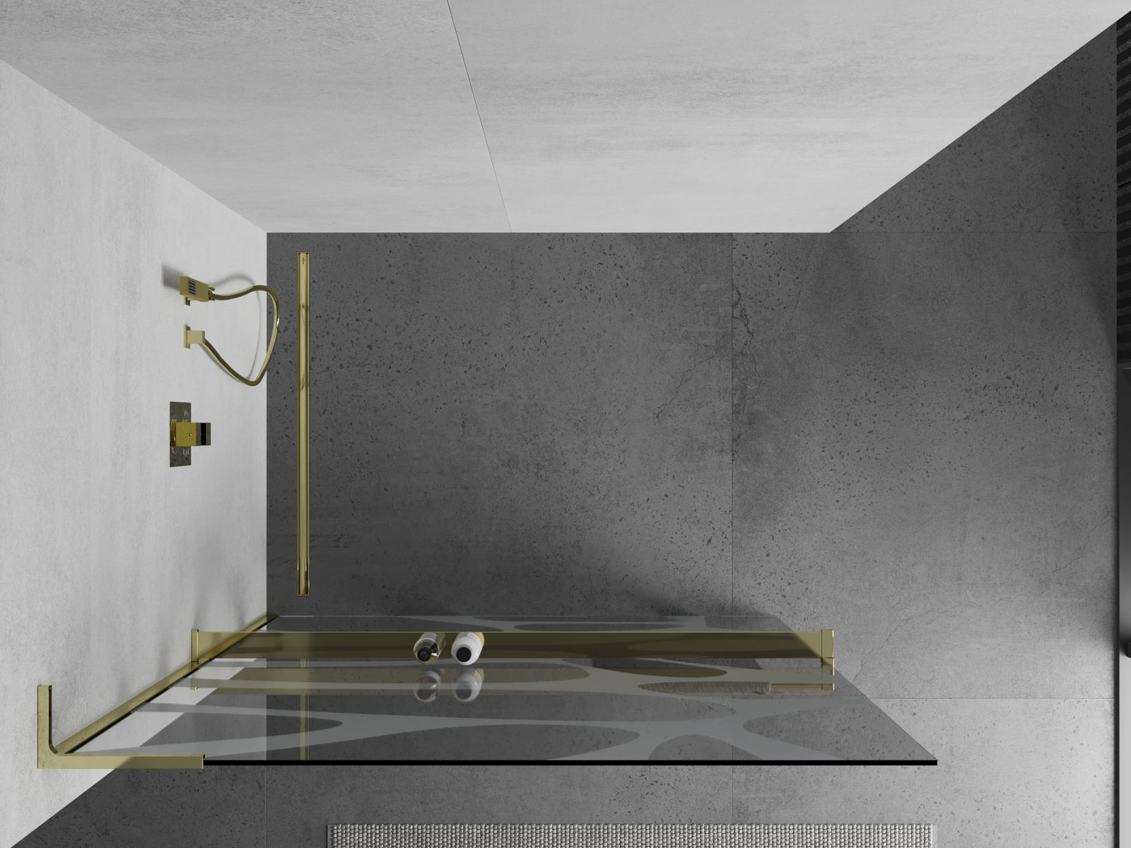Mexen Kioto+ L sprchová stěna s policí Walk-in 100 x 200 cm, bílá vlna, zlatá - 800-100-123-50-97