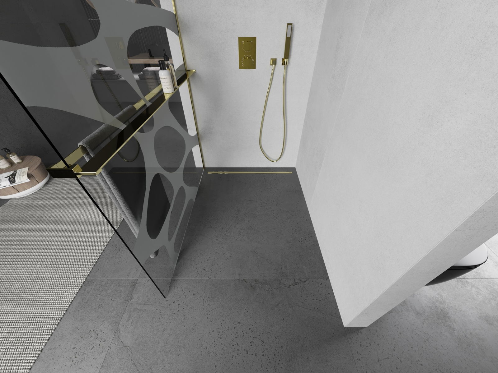 Mexen Kioto+ L sprchová stěna s poličkou Walk-in 110 x 200 cm, bílá vlna, zlatá - 800-110-123-50-97