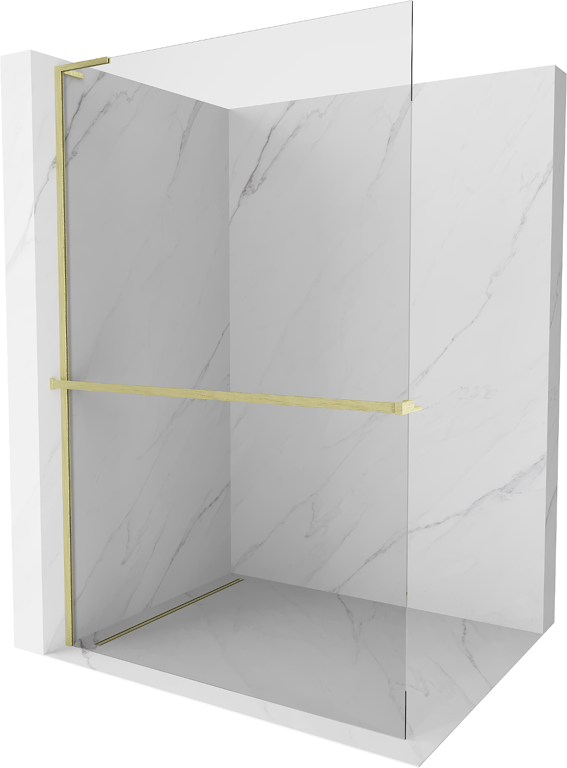 Mexen Kioto+ L Sprchová stěna s poličkou Walk-in 80 x 200 cm, transparentní, kartáčovaná zlatá - 800-080-123-55-00