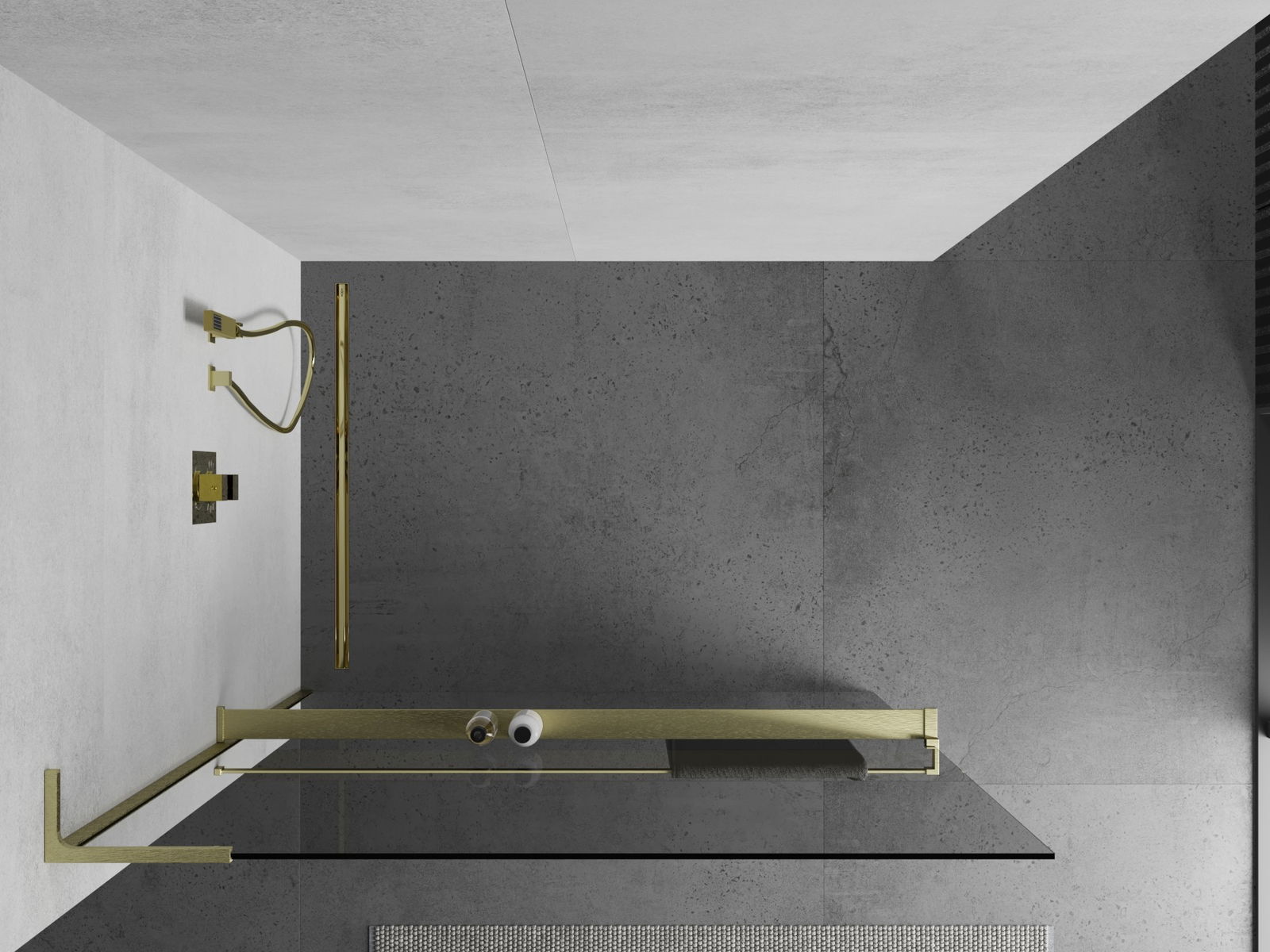 Mexen Kioto+ L sprchová stěna s policí Walk-in 120 x 200 cm, transparentní, zlatá kartáčovaná - 800-120-123-55-00