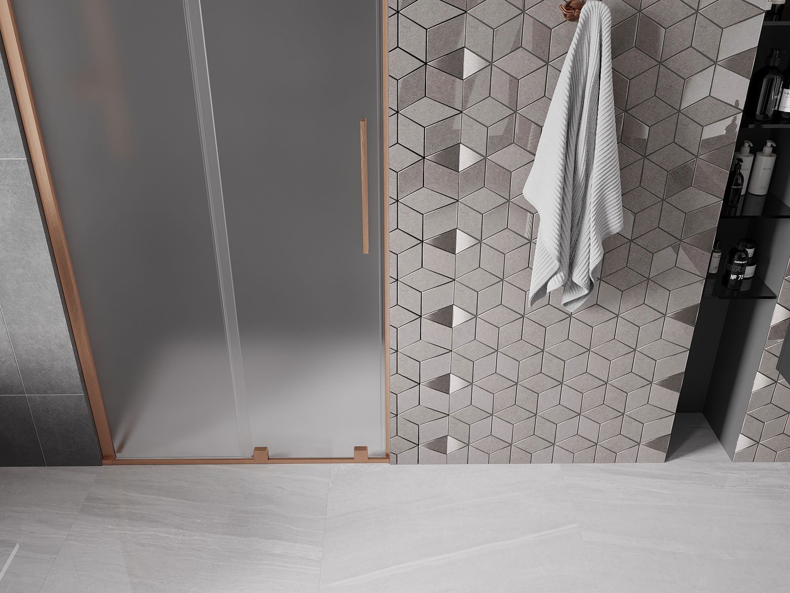 Mexen Velar posuvné sprchové dveře 120 cm, matné, kartáčovaná měď - 871-120-000-31-65