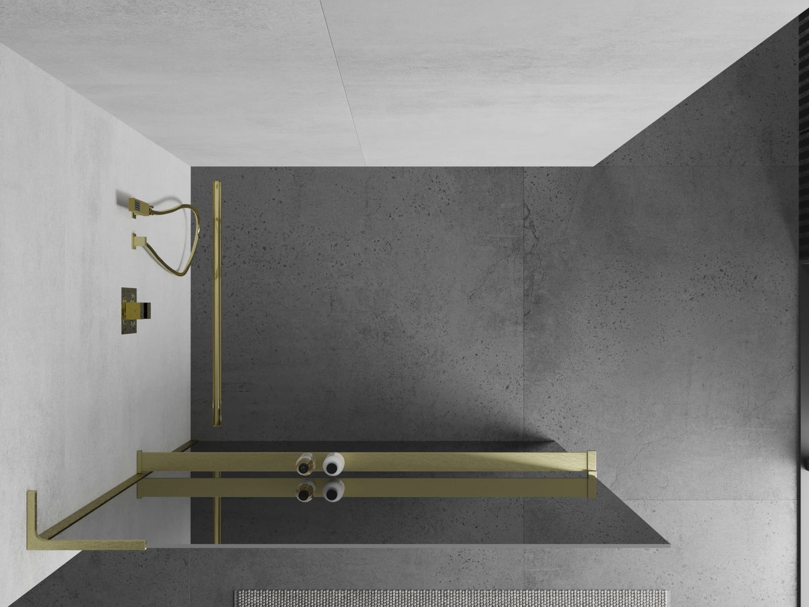 Mexen Kioto+ L sprchová stěna s policí Walk-in 120 x 200 cm, zrcadlo, zlatá kartáčovaná - 800-120-123-55-50