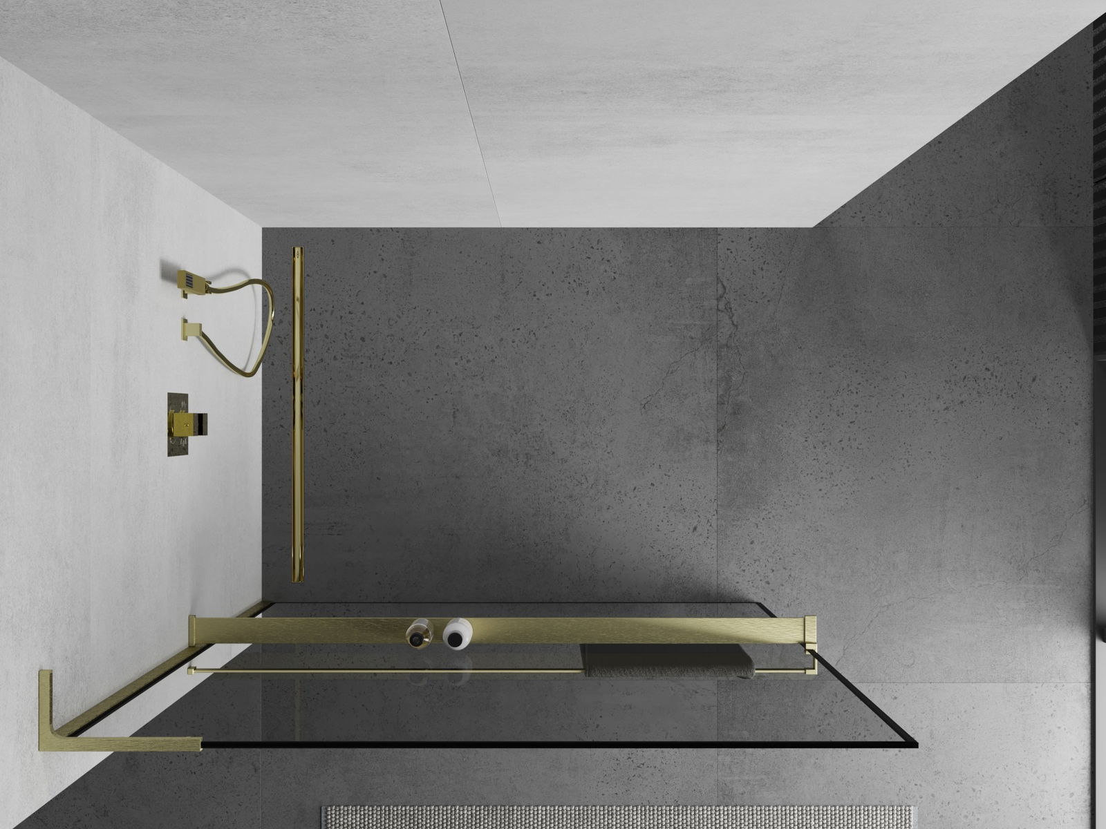 Mexen Kioto+ L sprchová stěna s policí Walk-in 90 x 200 cm, černý rám, zlatý kartáčovaný - 800-090-123-55-70