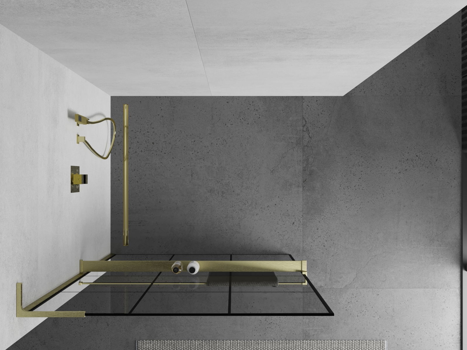 Mexen Kioto+ L sprchová stěna s policí Walk-in 110 x 200 cm, černá mřížka, zlatá kartáčovaná - 800-110-123-55-77