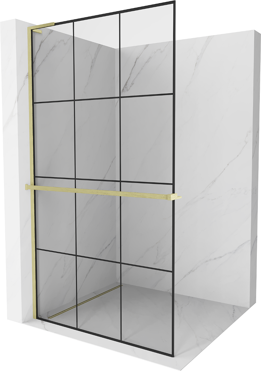 Mexen Kioto+ L sprchová stěna s poličkou Walk-in 120 x 200 cm, černá mřížka, zlatá kartáčovaná - 800-120-123-55-77