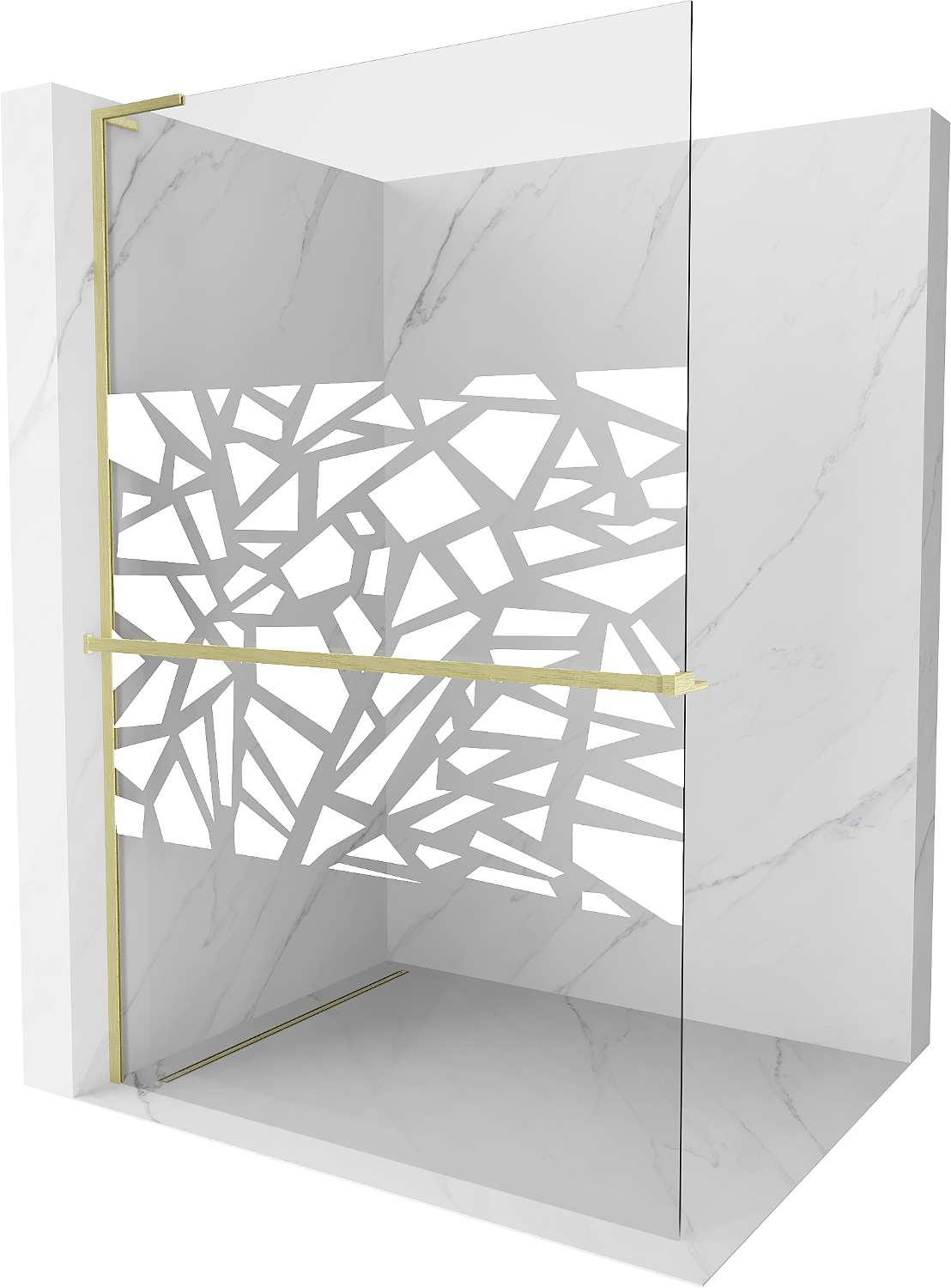 Mexen Kioto+ L sprchová stěna s poličkou Walk-in 100 x 200 cm, bílý vzor, zlatý kartáčovaný - 800-100-123-55-85