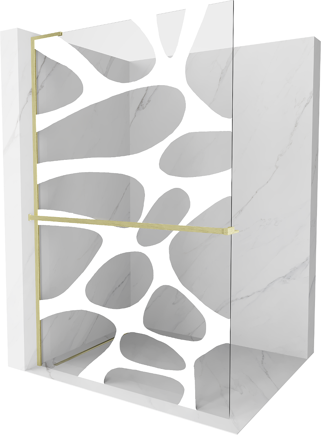 Mexen Kioto+ L sprchová stěna s policí Walk-in 120 x 200 cm, bílá vlna, zlatá kartáčovaná - 800-120-123-55-97