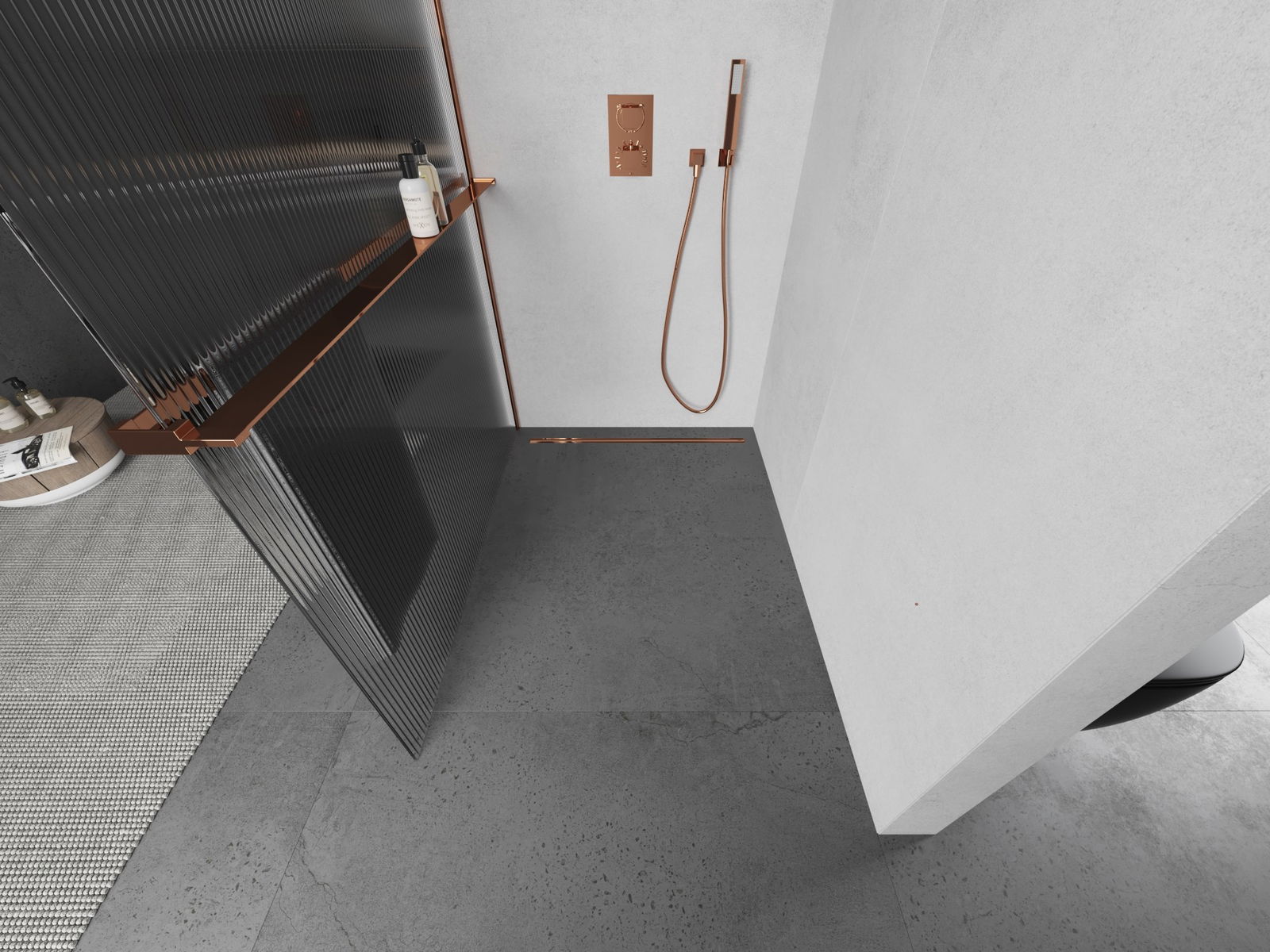Mexen Kioto+ L sprchová stěna s policí Walk-in 70 x 200 cm, pruhy, růžové zlato - 800-070-123-60-09