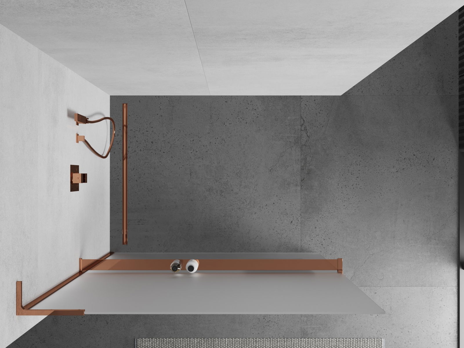 Mexen Kioto+ L sprchová stěna s policí Walk-in 100 x 200 cm, mrazivý vzhled, růžové zlato - 800-100-123-60-30